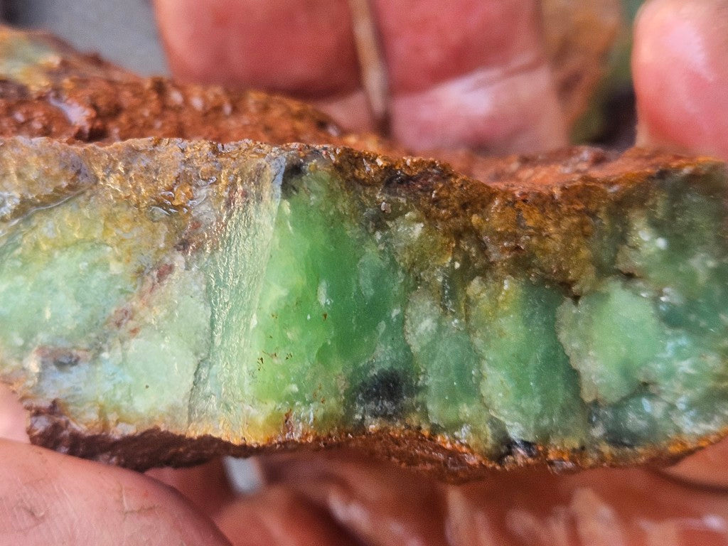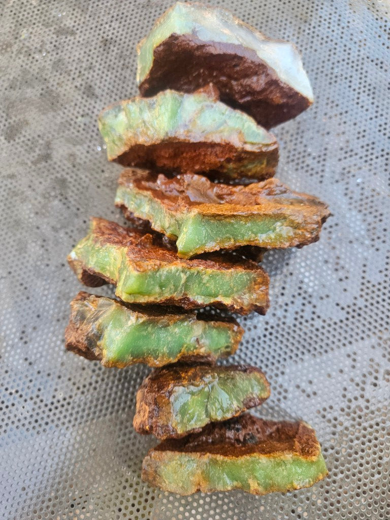 Rough chrysoprase suitable for cabbing, tumbling or specimens.