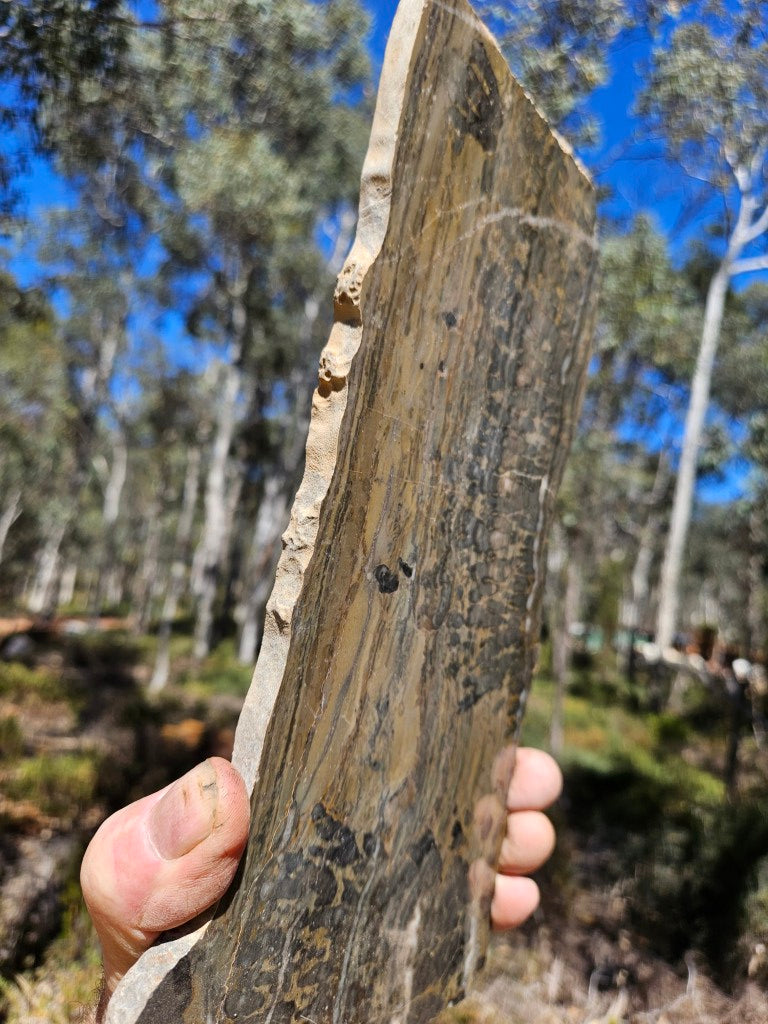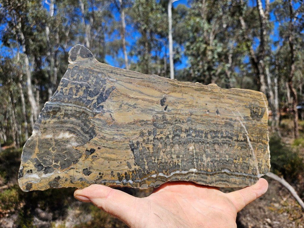 Polished fossil stromatolite slab. Asperia digitata YD119 John