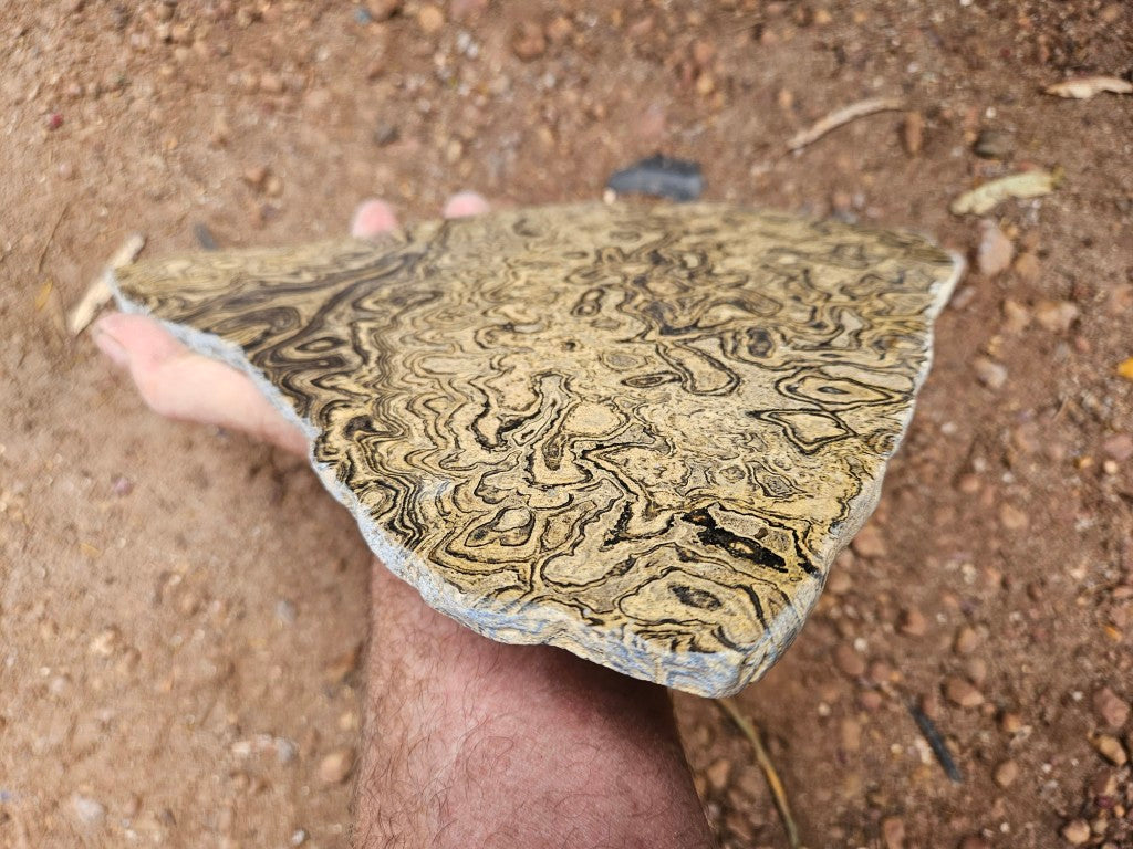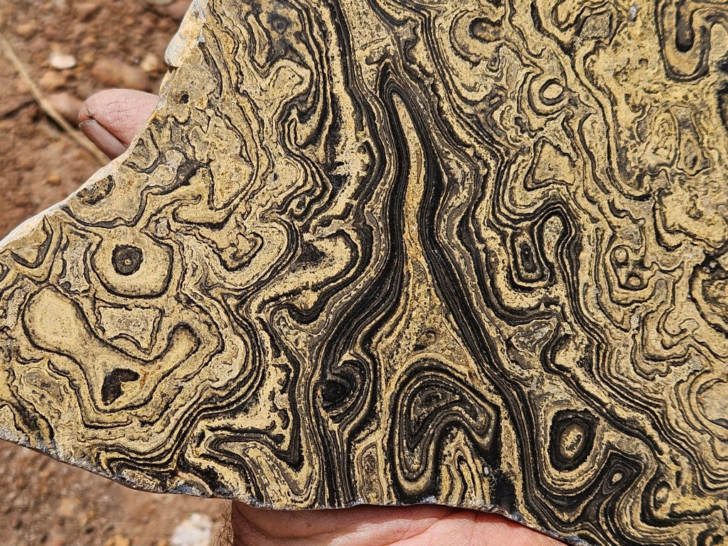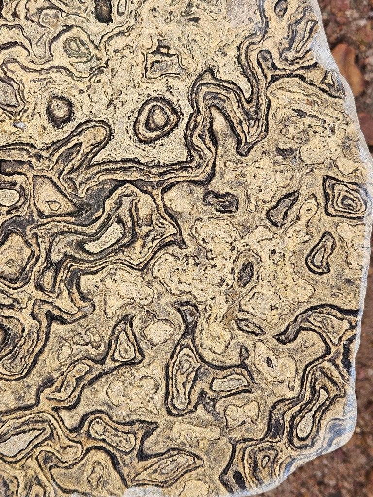 This museum quality specimen has been cut at right angles to the bedding and displays the columnar structure beautifully !