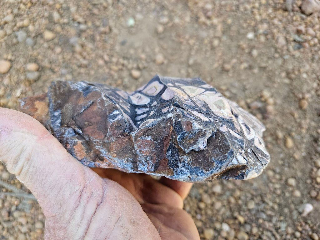 OJ207 A rough rock, cut and polished on one side with a natural weathered back .