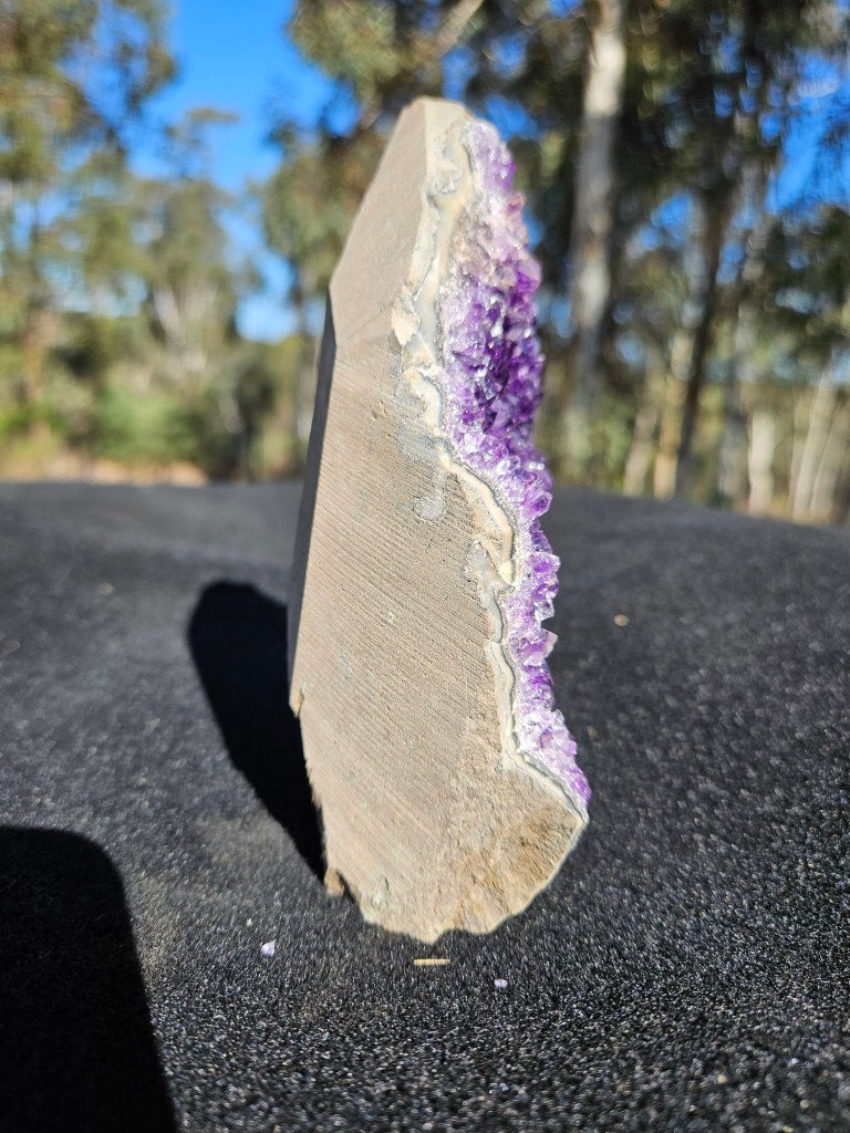 AMU106 Portion of an Amethyst geode with a cut base to stand as a display specimen.