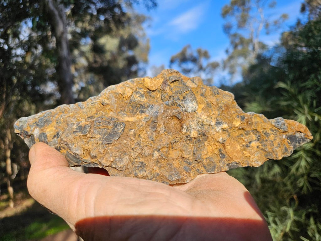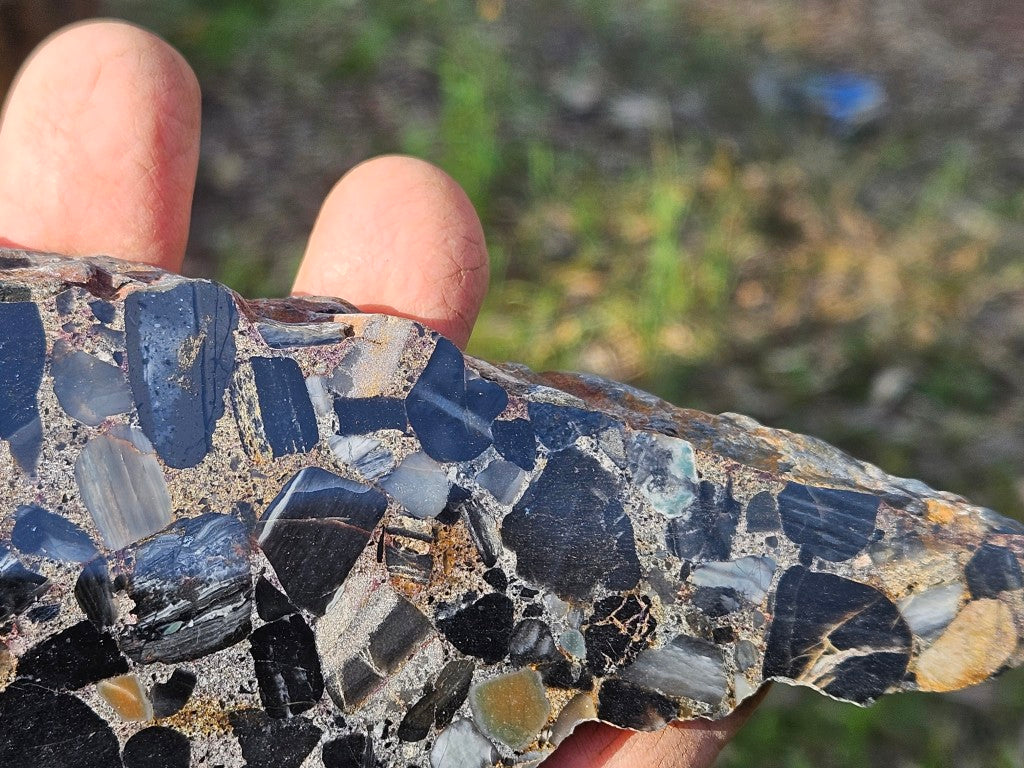 Conglomerate is a sedimentary rock consisting of individual pebbles within a finer-grained matrix that have become cemented together. Conglomerates are a very common rock type that occur in numerous locations world wide. However this one is special due to it's extreme age as well as inclusions of pyrite scattered throughout. The location it comes from is near Nullagine in the Pilbara region of Western Australia. For the geologically minded, our "Black Jasper Conglomerate" is a polymictic pebble and cobble conglomerate. It occurs in the Proterozoic Mount Bruce Supergroup which is part of the Fortescue Group with an age of approx. 2,765 million years Polymictic : a conglomerate which contains clasts (fragments) of many different rock types.