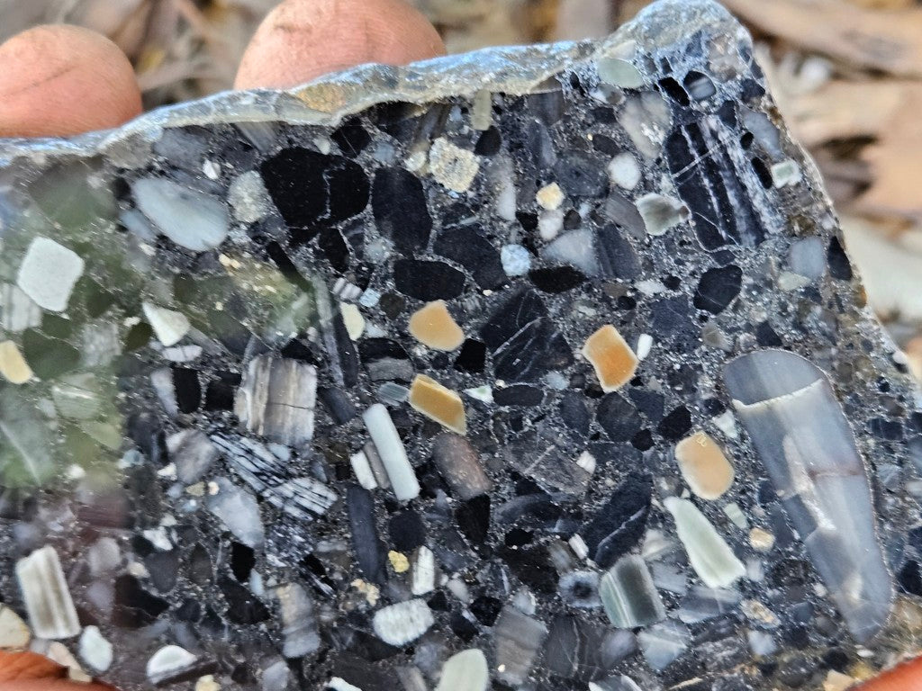 B237 Black Jasper Conglomerate slab, polished on one side.