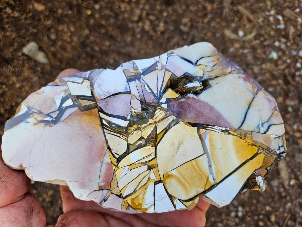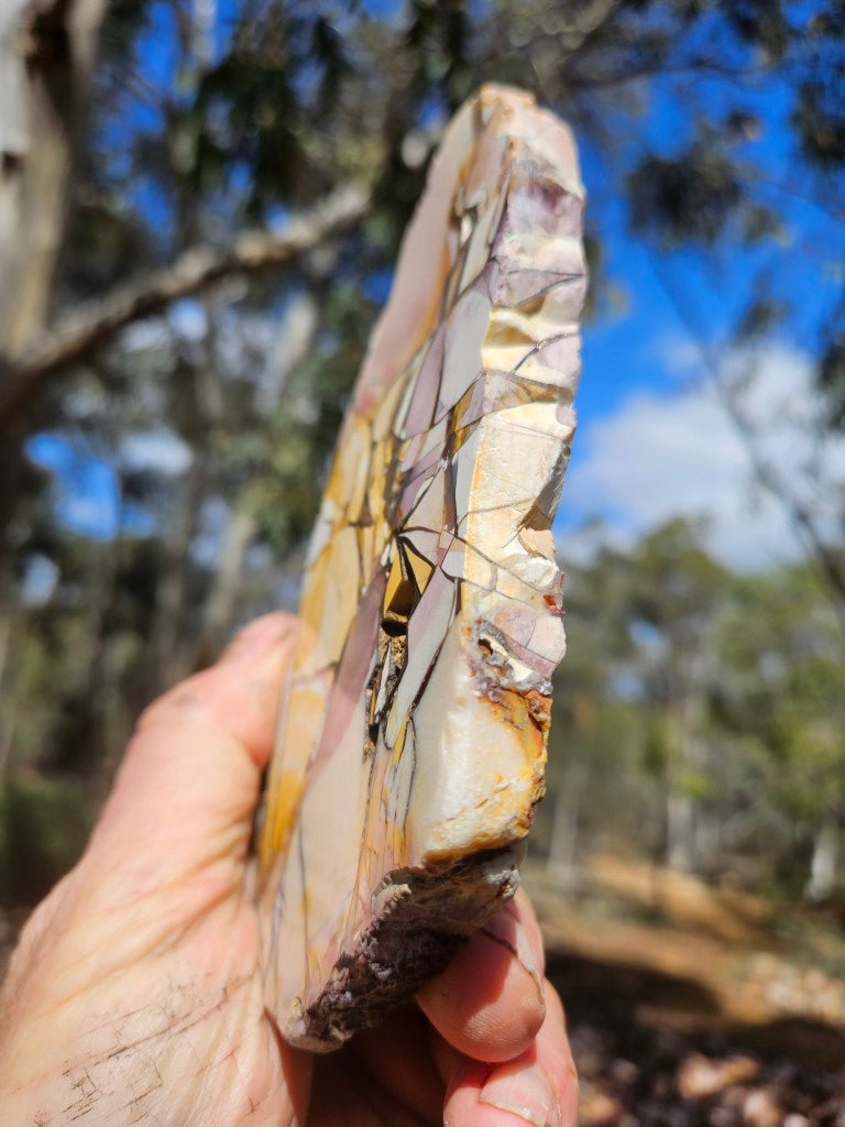 BM335 Brecciated Mookaite slab, cut and polished on one side .