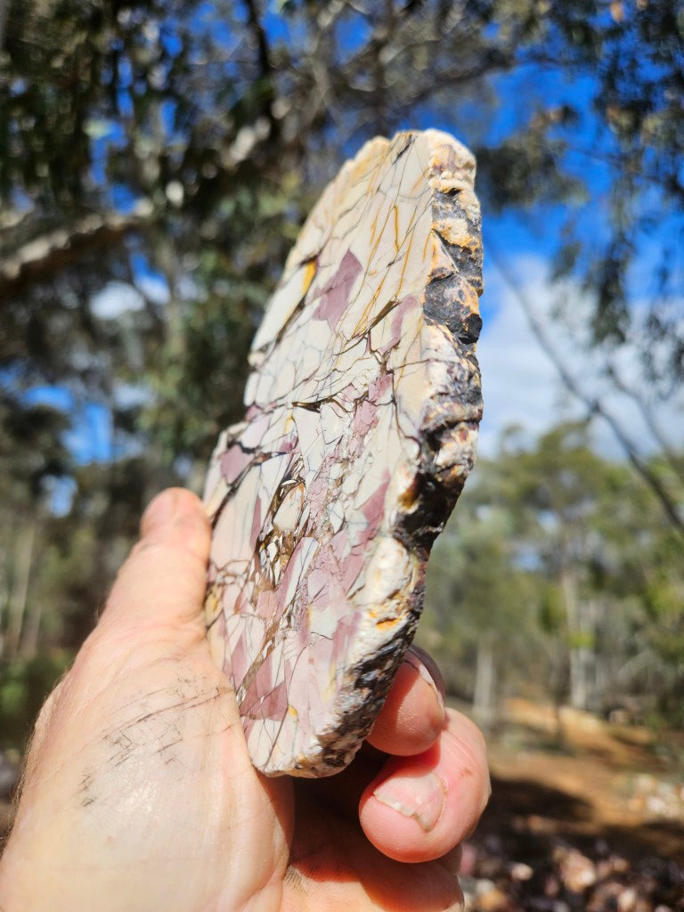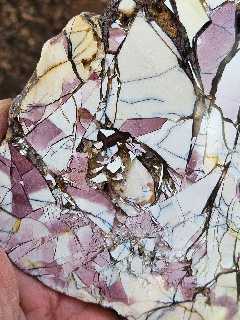 BM336 Brecciated Mookaite slab, cut and polished on one side .