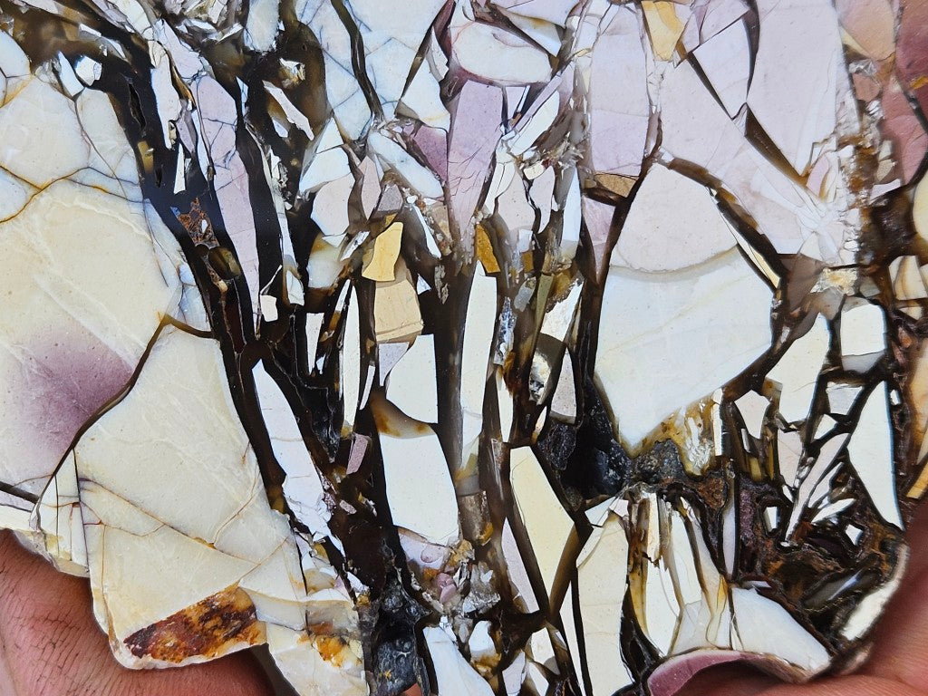 BM337 Brecciated Mookaite slab, cut and polished on one side .