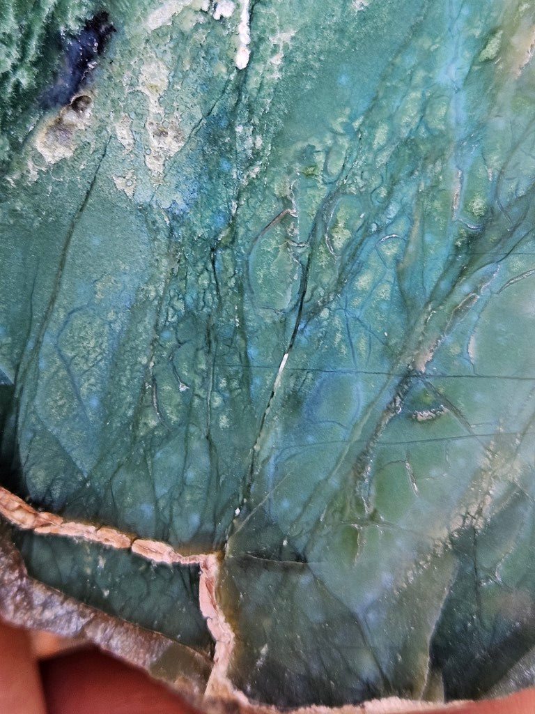 CC166 Chrome chalcedony rough rock, cut and polished on one side with a natural rough back.
