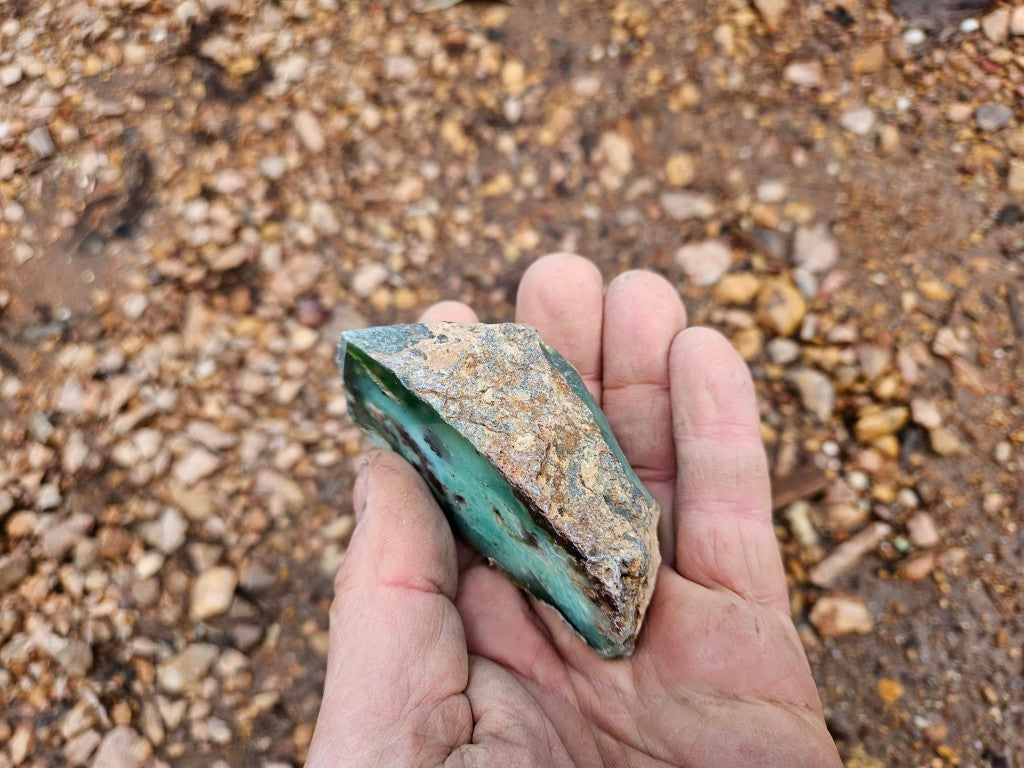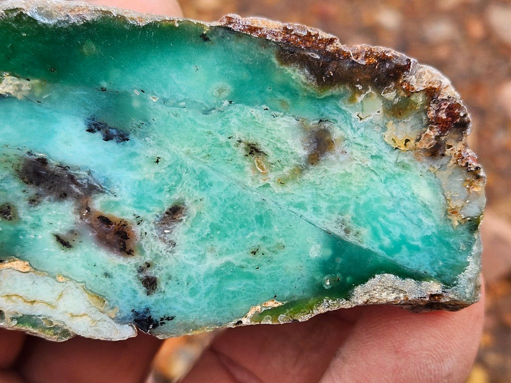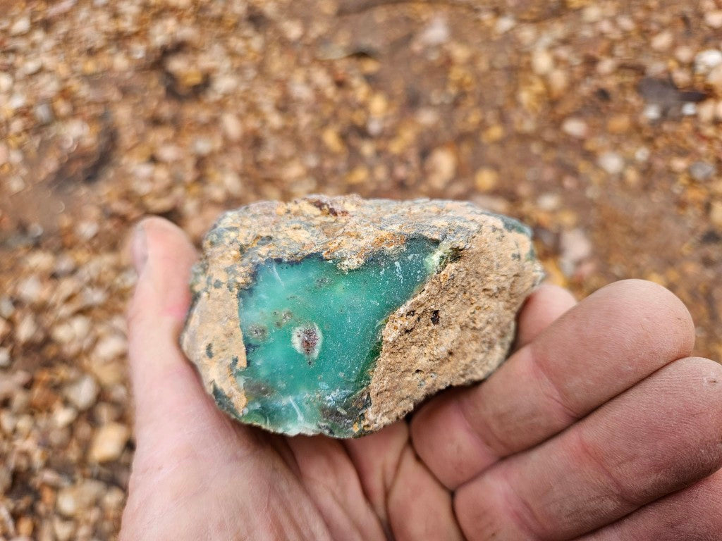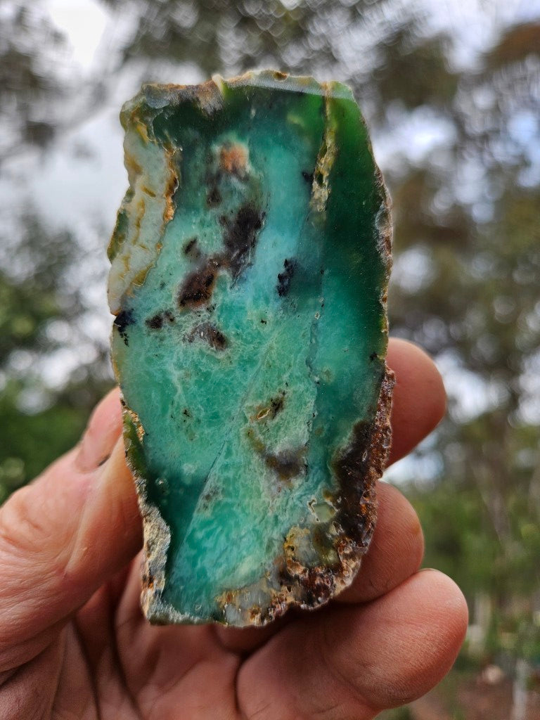 CH486 Chrysoprase rough rock, cut and polished on one side with a rough, natural back.
