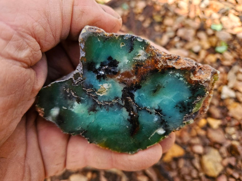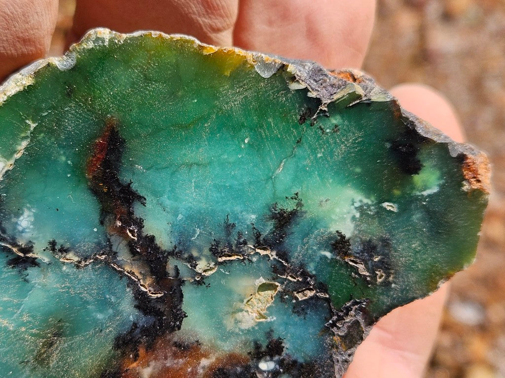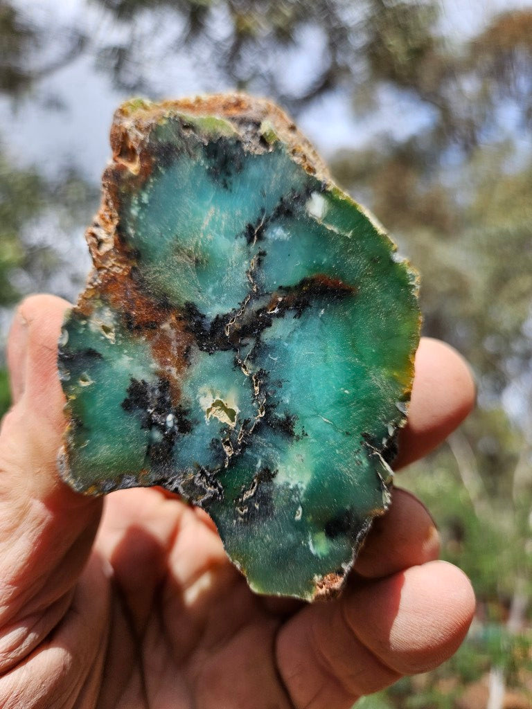 CH487 Chrysoprase rough rock, cut and polished on one side with a rough, natural back.
