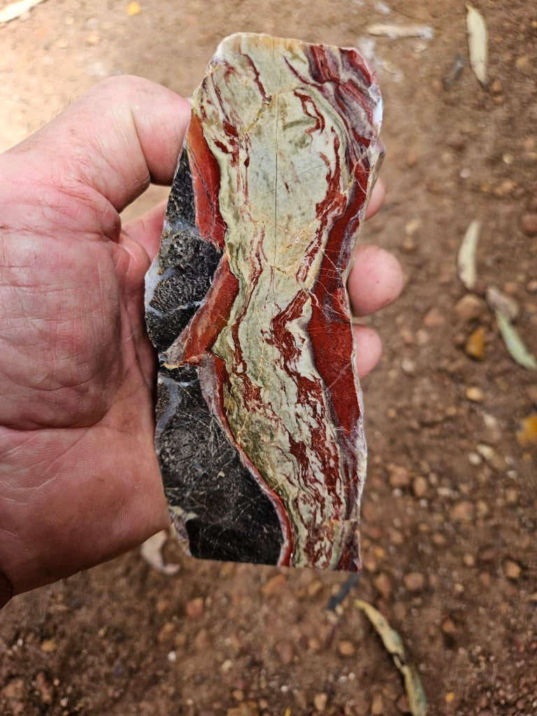 Convoluted jasper comes from Turee Creek Station in the Pilbara region of Western Australia. The location is about 160 km west of the iron ore mining town of Newman.