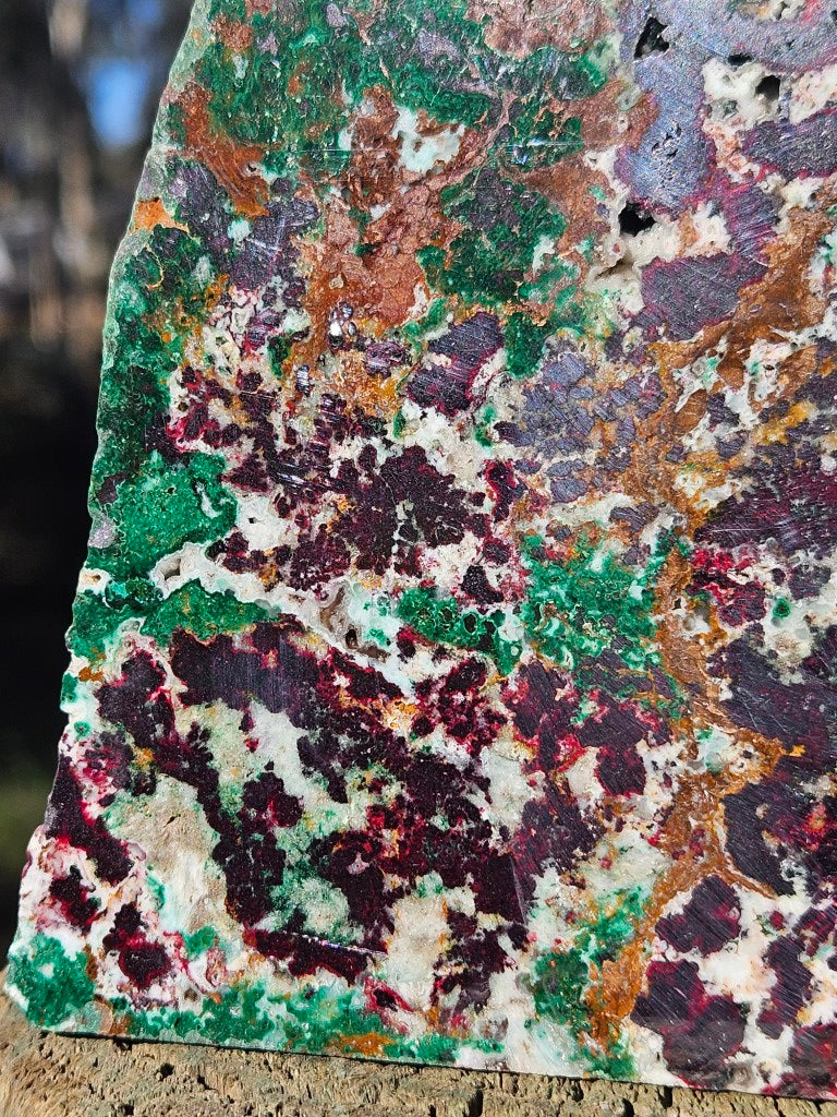 Consisting of dark green malachite, brown iron oxides, cuprite and black, metallic looking tenorite.