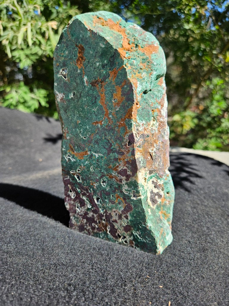 CO119 DeGrussa copper ore rough rock, cut and polished on one side with a cut back and cut base to sit on.