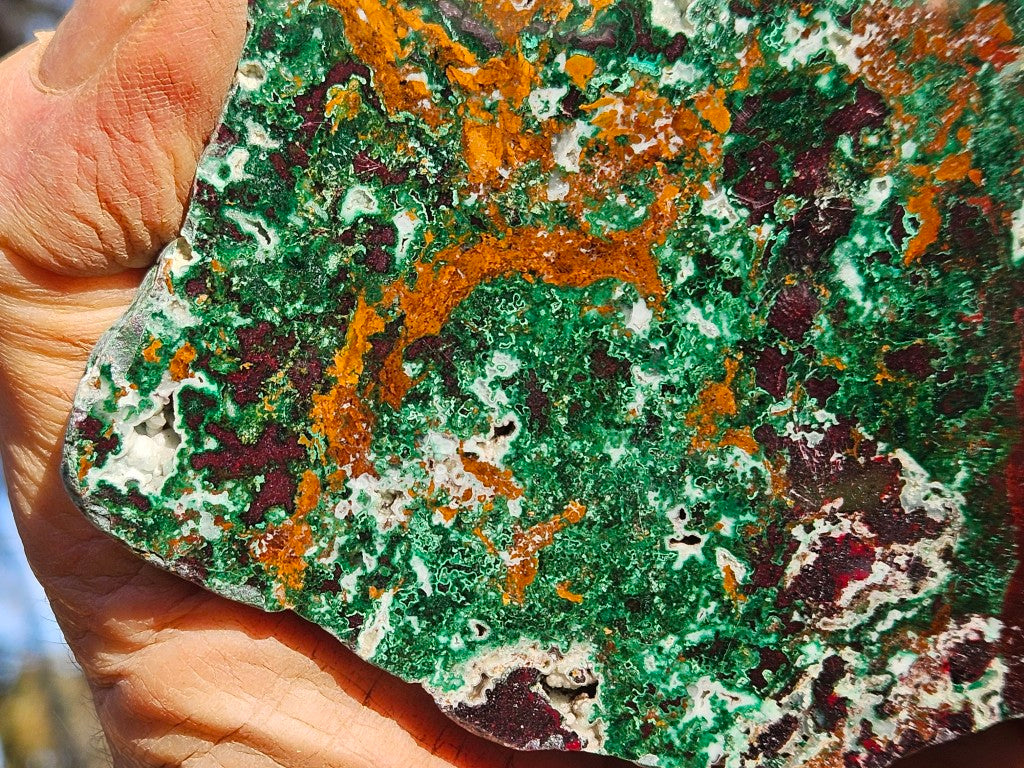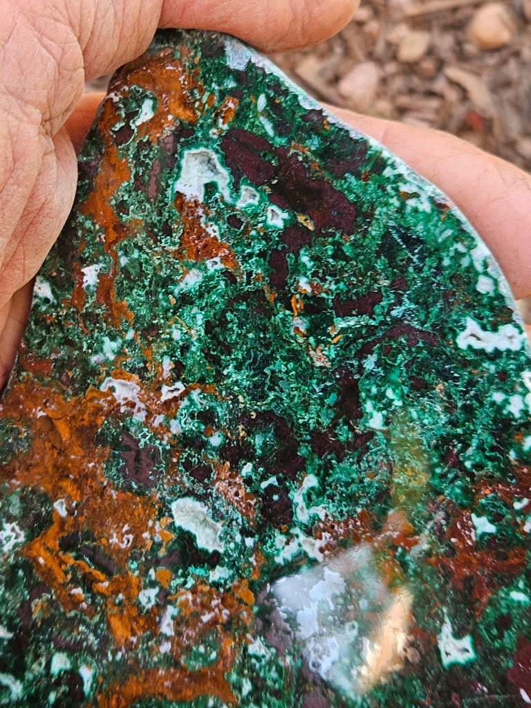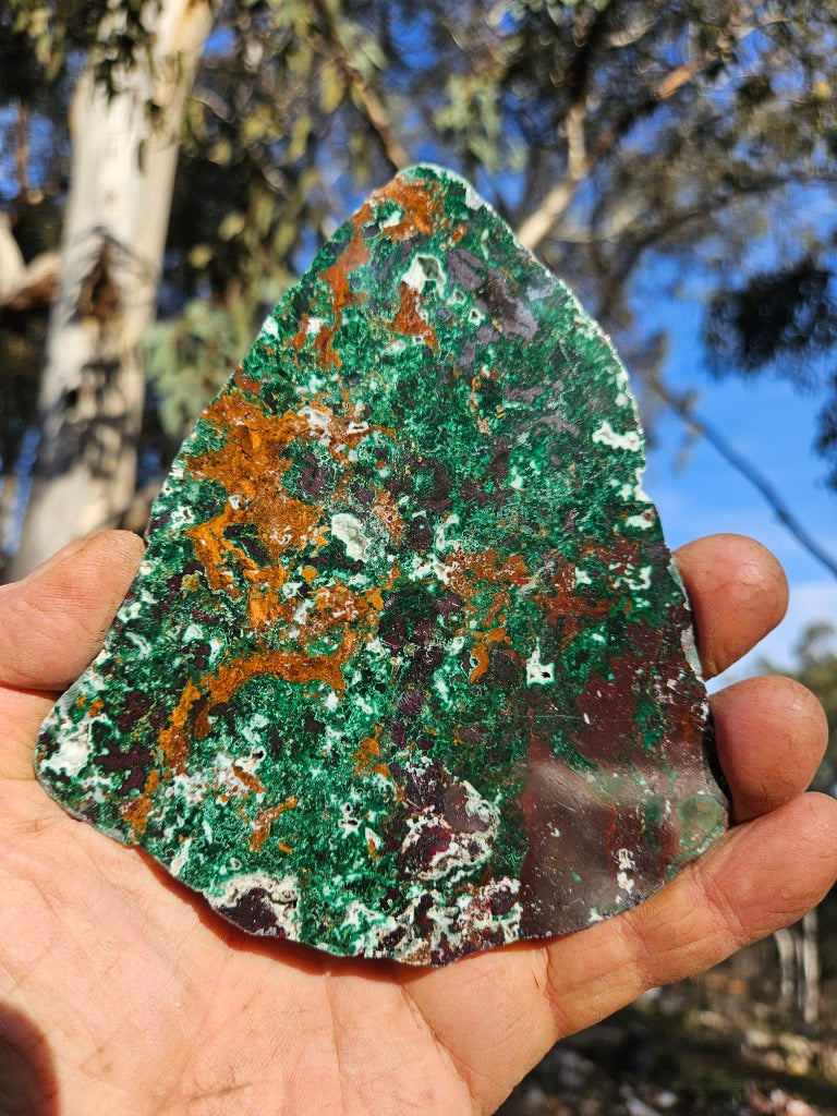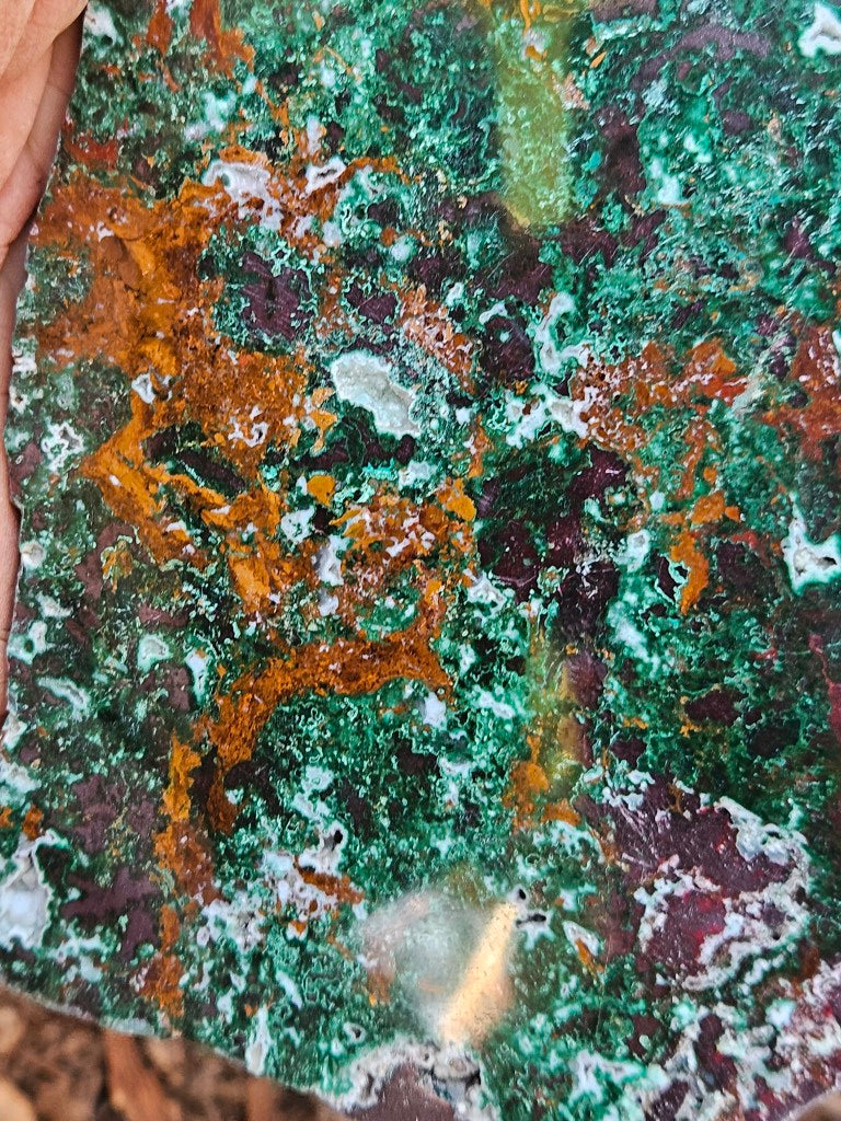 Consisting of dark green malachite, tenorite, minor cuprite and brown iron oxides.
