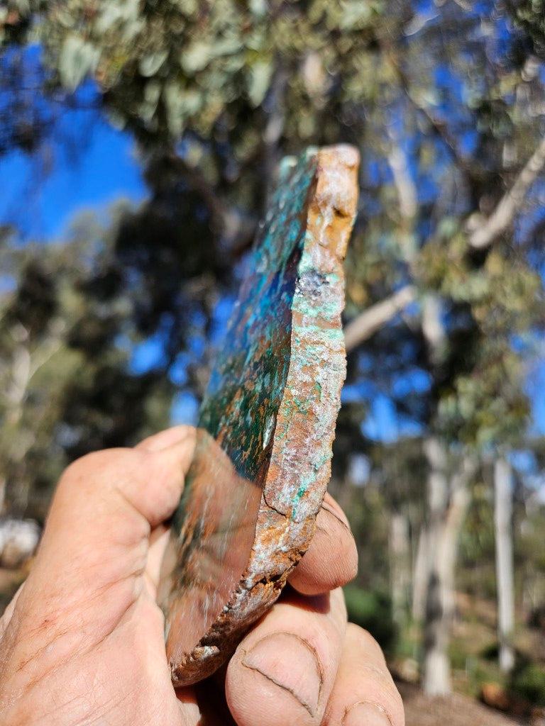 Consisting of dark green malachite, tenorite,  cuprite, chrysocolla, native copper and brown iron oxides.