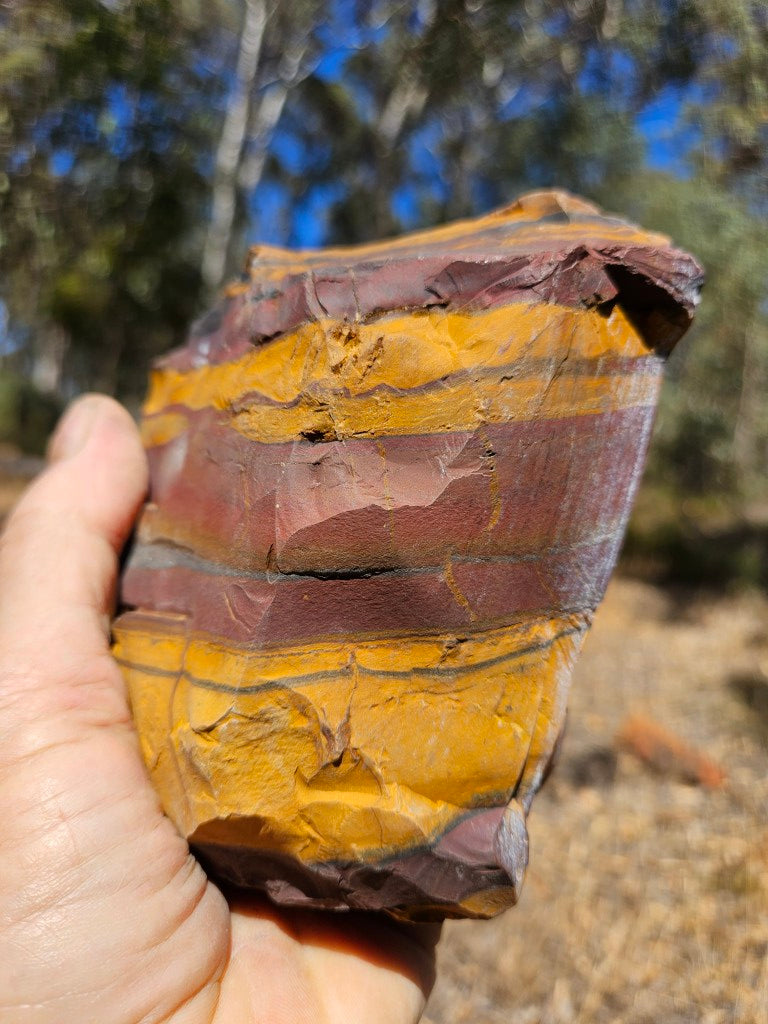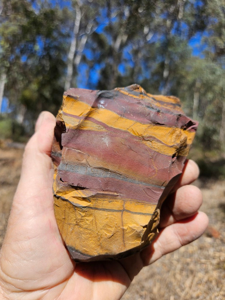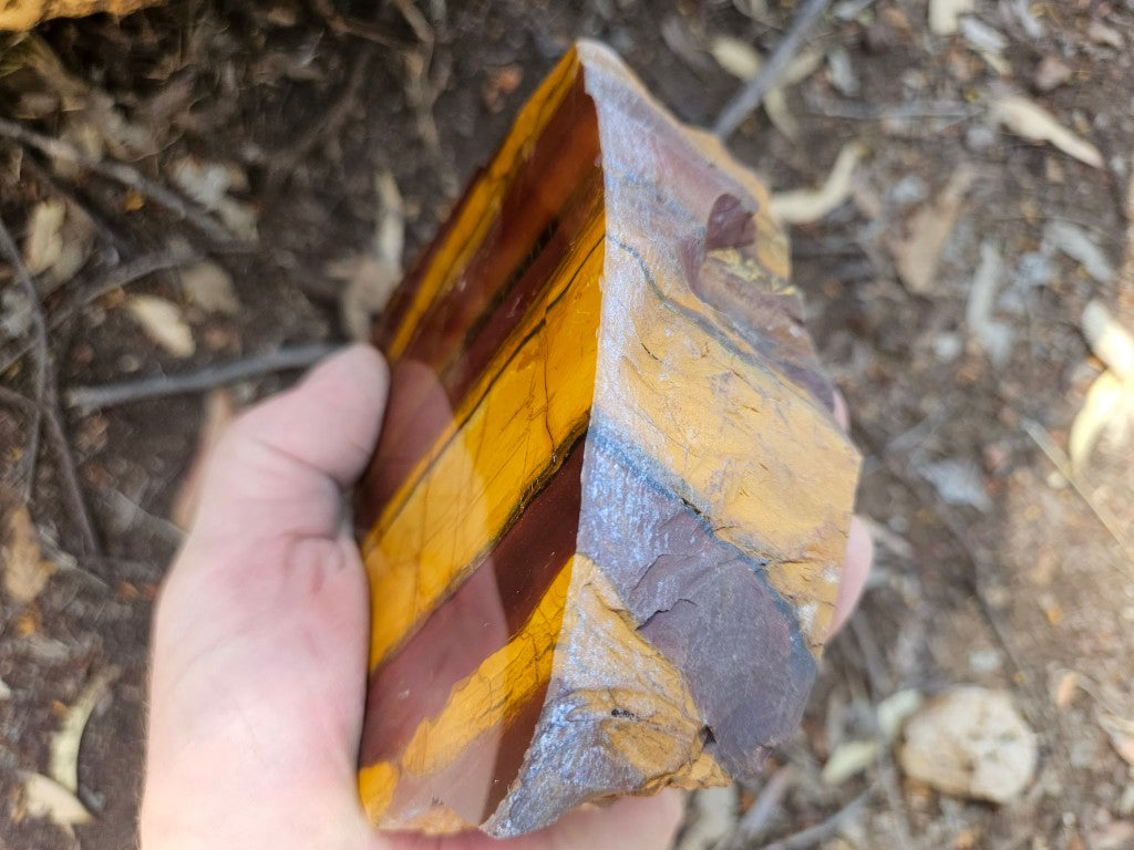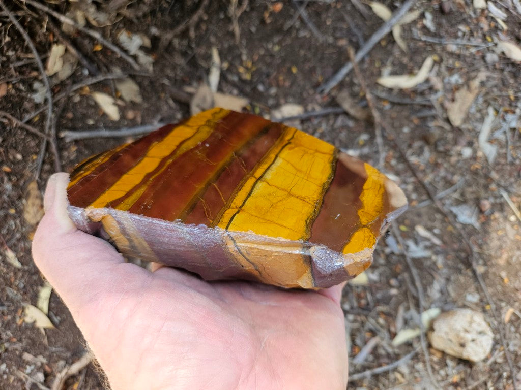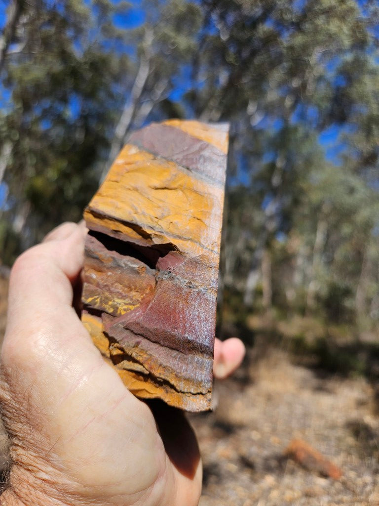 Desert Sunset rough rock, cut and polished on one side with a natural rough back.