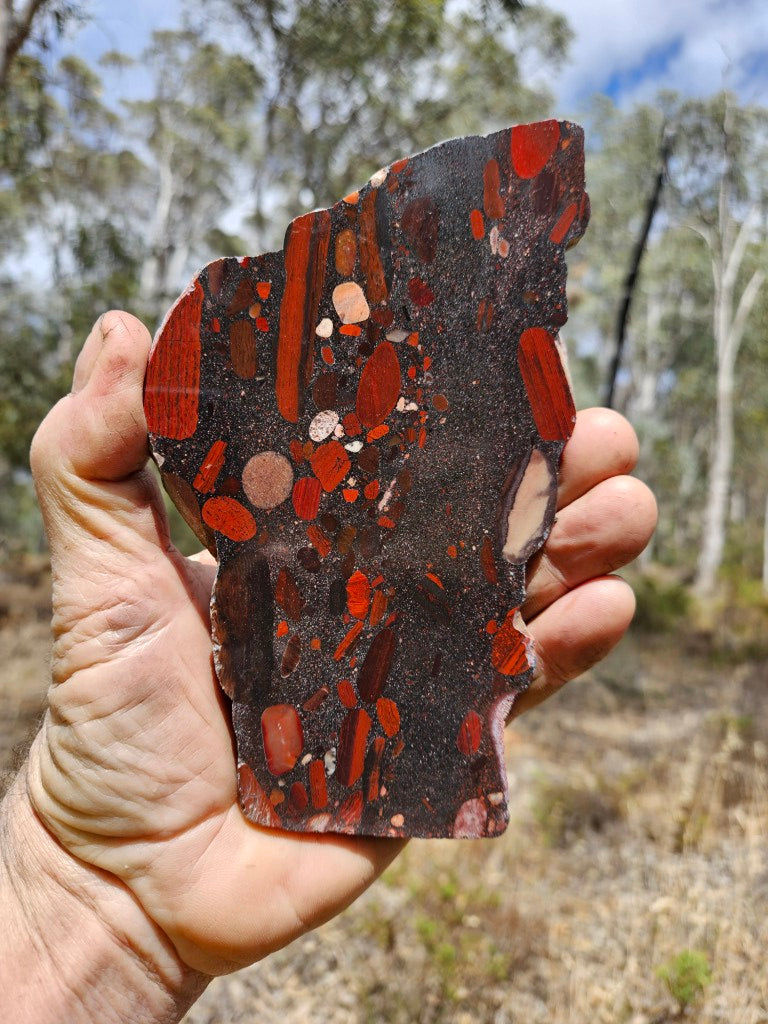 It occurs in a geological unit called the "Mt. McGrath Formation" which has an age of close to 2 billion years. Nearest town is Paraburdoo in the Pilbara region of Western Australia.