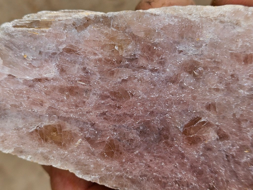 KU118 Kunzite (pink spodumene) rough rock, cut and polished on one side. Natural back.