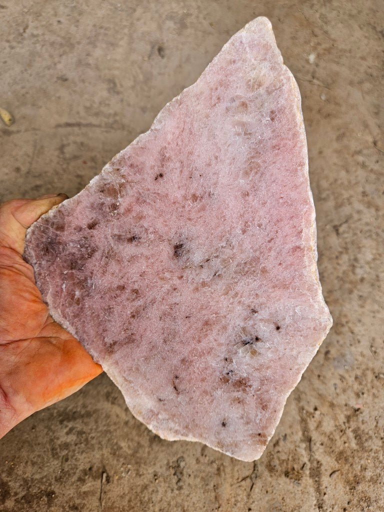 KU117 Kunzite (pink spodumene) slab, cut and polished on one side.