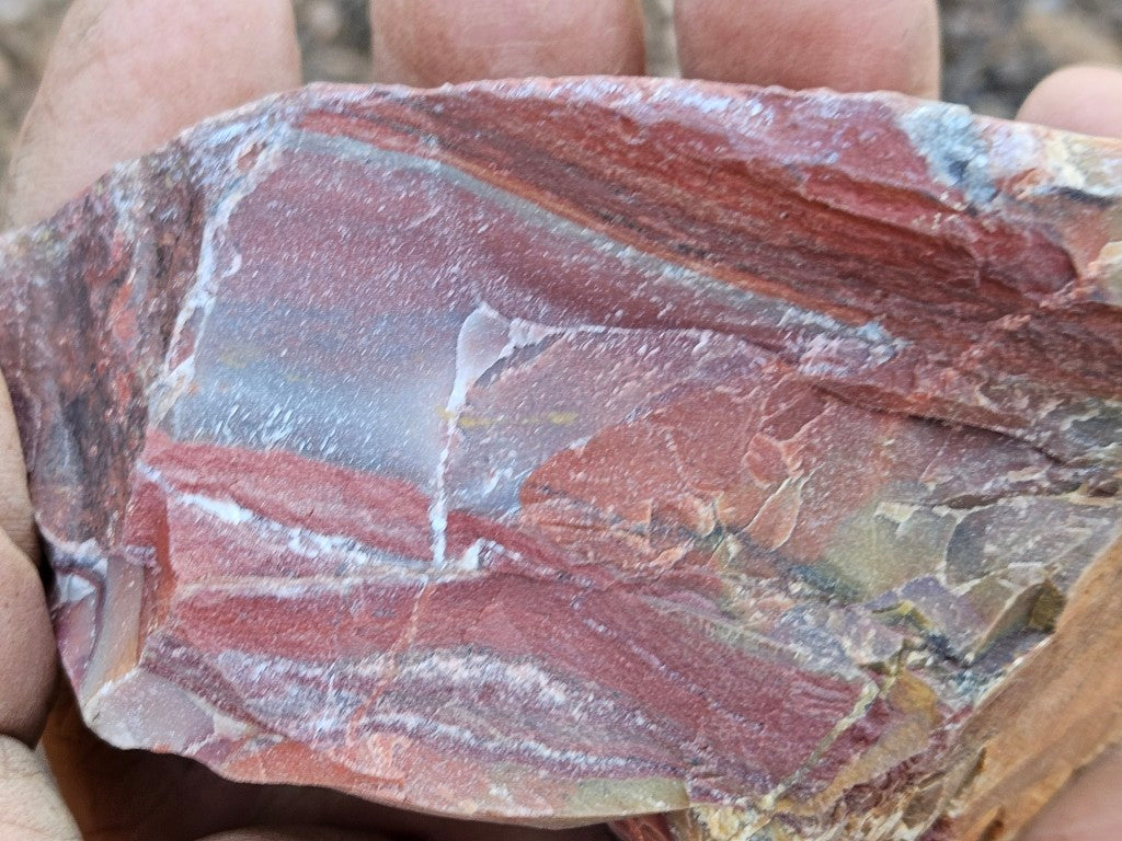 Marble Bar chert is a finely banded, iron-rich silica rock from the Marble Bar Chert Member (Warrawoona Group) of Western Australia. Formed in shallow Archean seas, it dates to the Paleoarchean (~3.46 billion years old), making it one of the Earth’s oldest well-preserved sedimentary rocks.