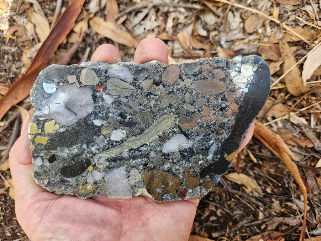 Polished Beaton's Creek auriferous conglomerate slab BC113