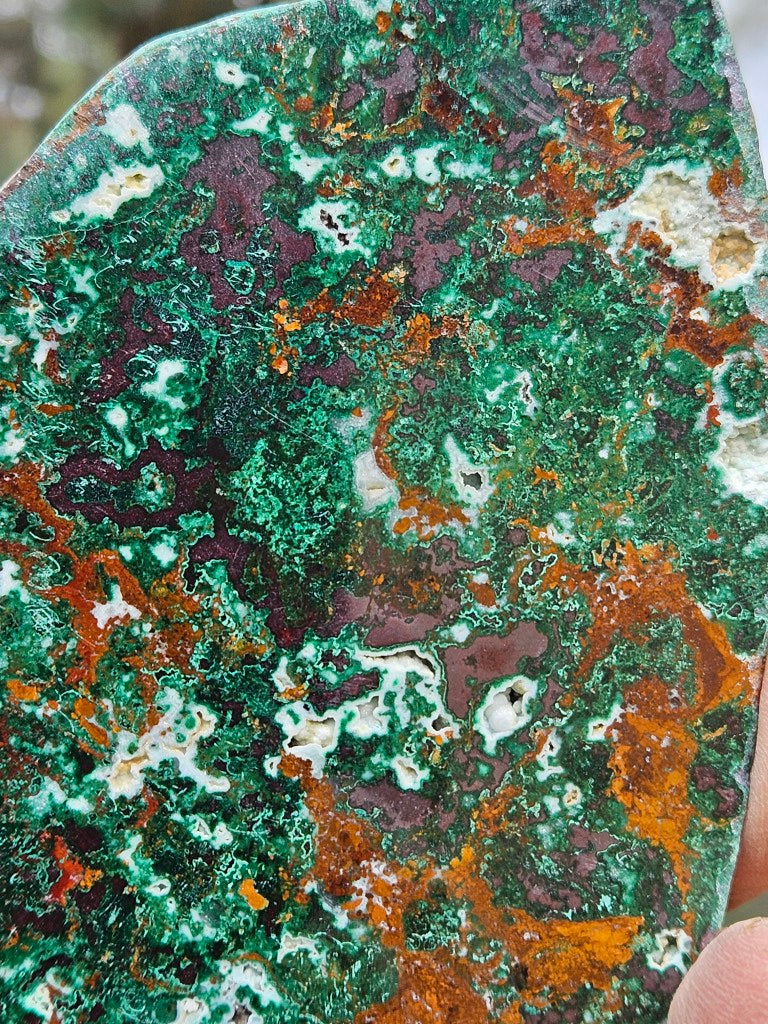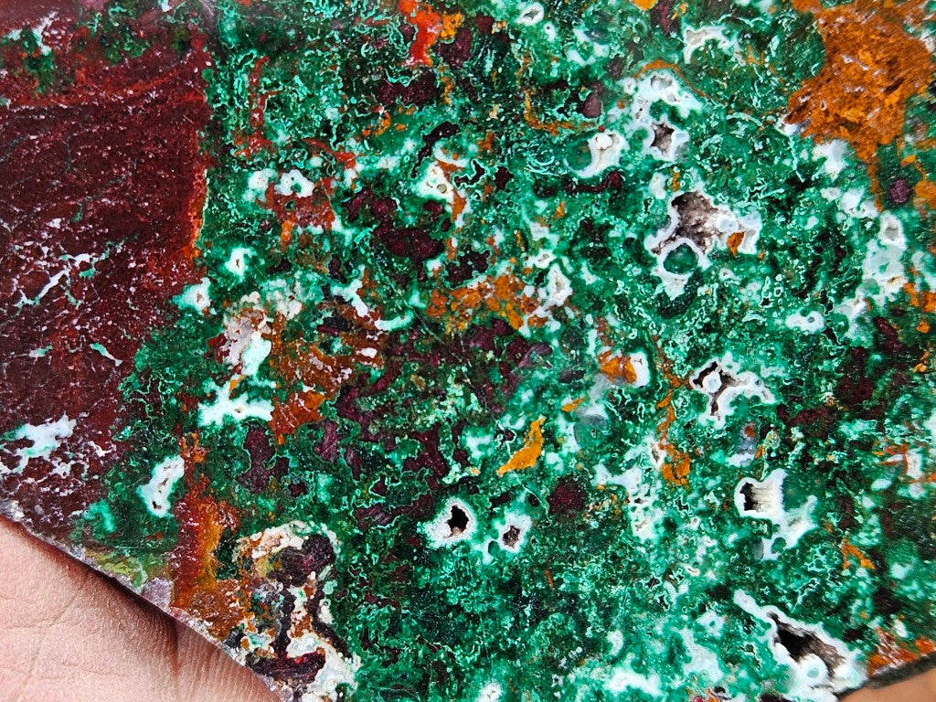 Consisting of dark green malachite, tenorite, minor cuprite and brown iron oxides.