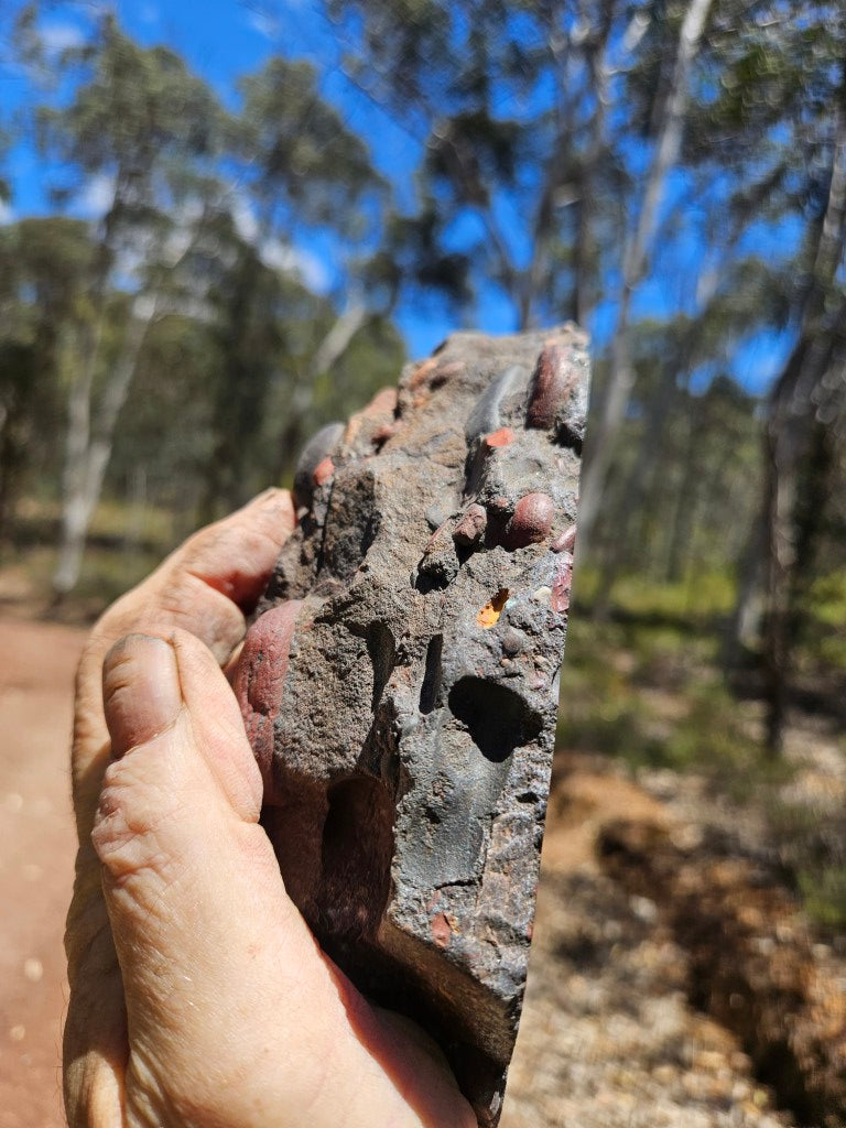 It occurs in a geological unit called the "Mt. McGrath Formation" which has an age of close to 2 billion years. Nearest town is Paraburdoo in the Pilbara region of Western Australia.
