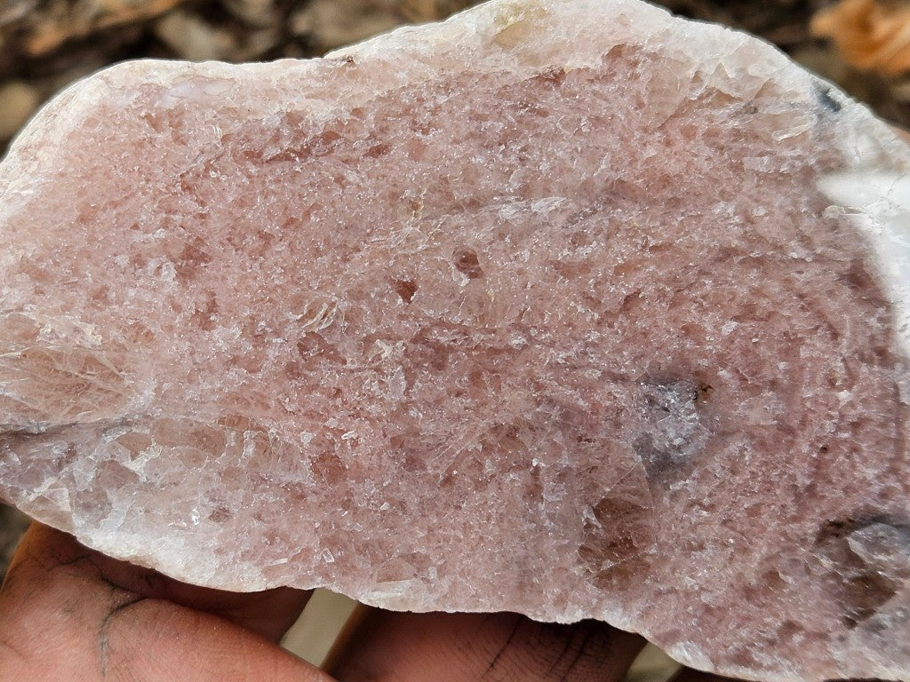 KU122 Kunzite (pink spodumene) slab, cut and polished on one side.