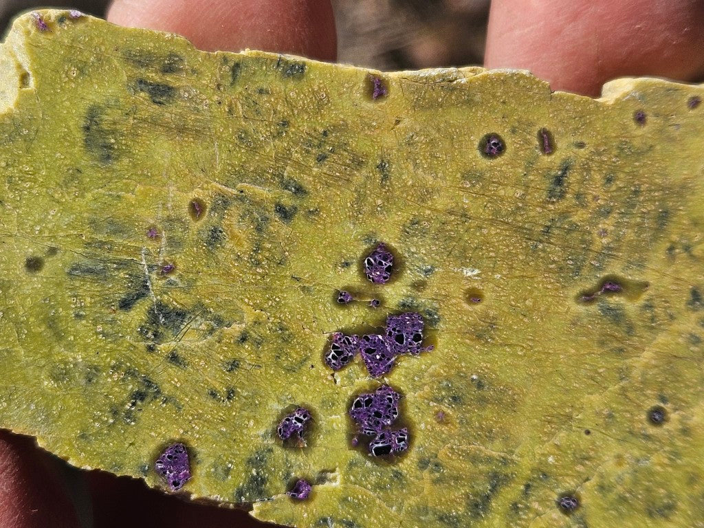 STI152. Stichtite in Serpentine slab, cut and polished on one side.