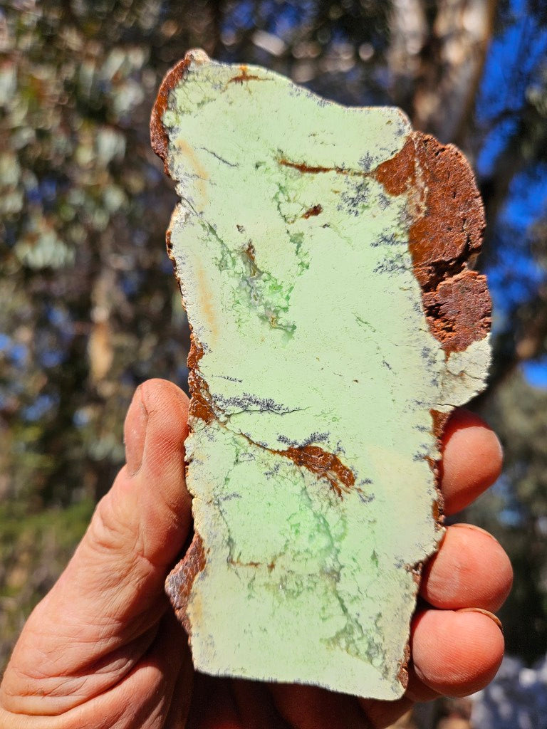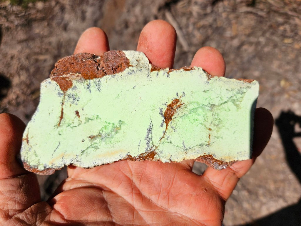 The subtle lime green colouration is caused by the presence of nickel mineralisation.