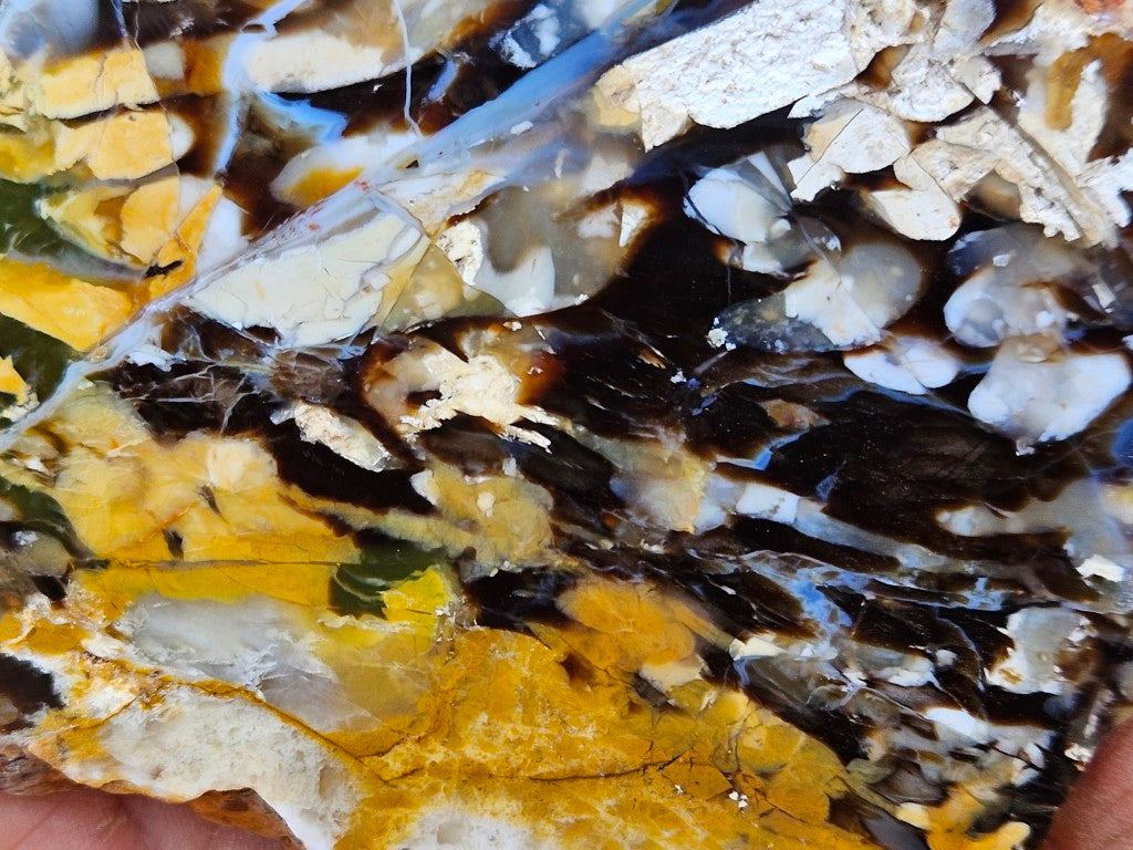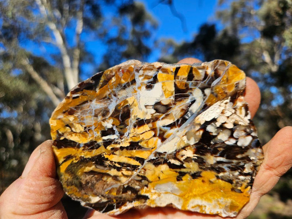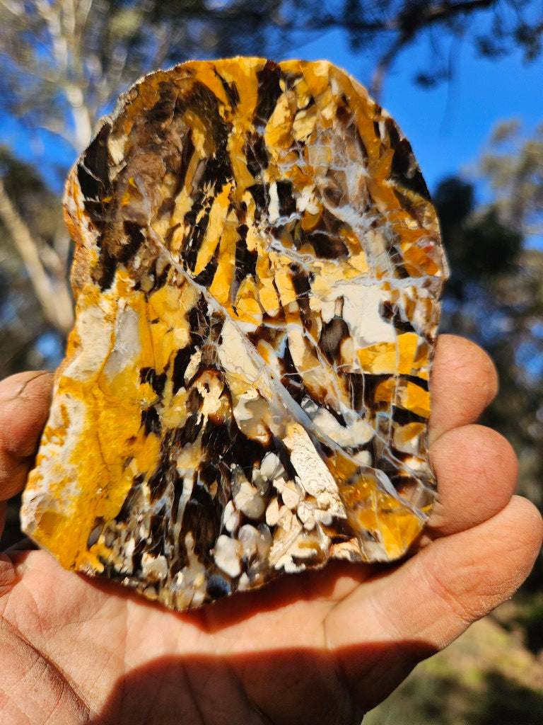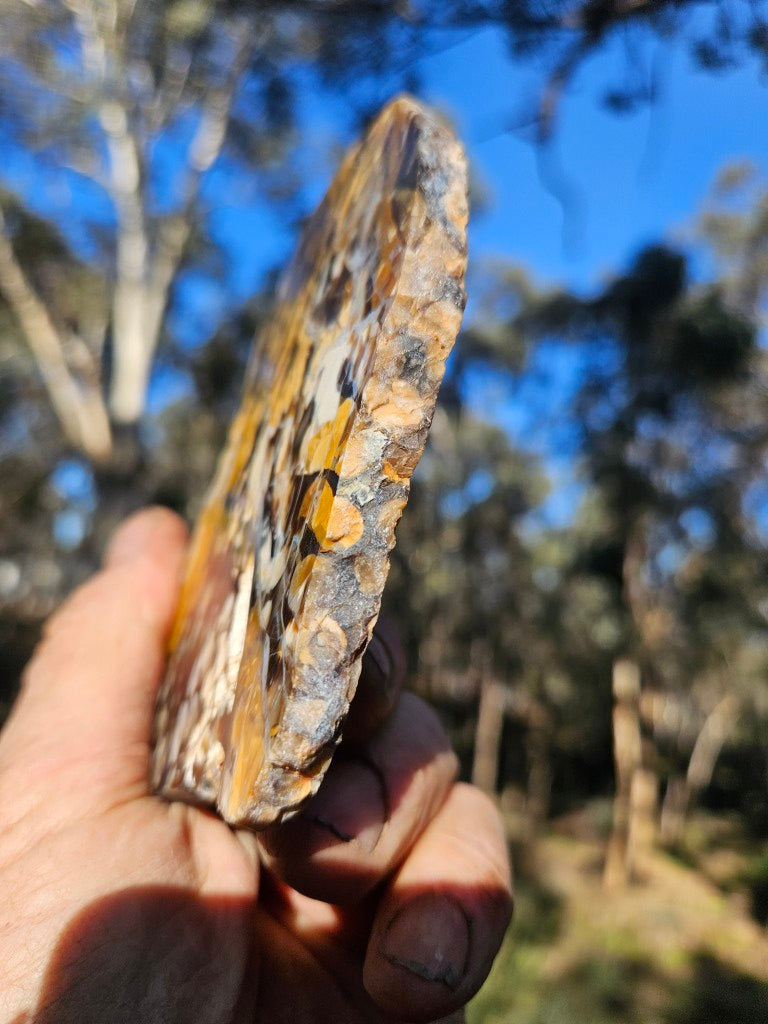 PW355. Peanut Wood slab, cut and polished on one side .