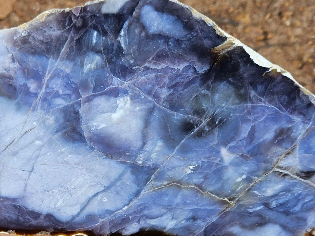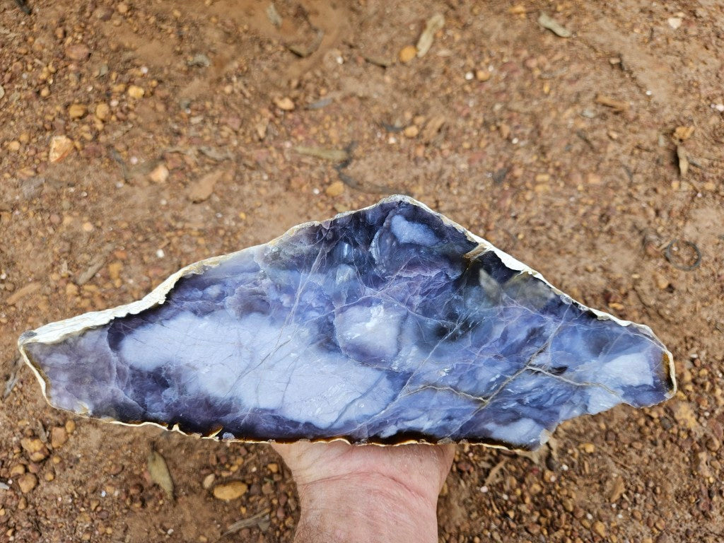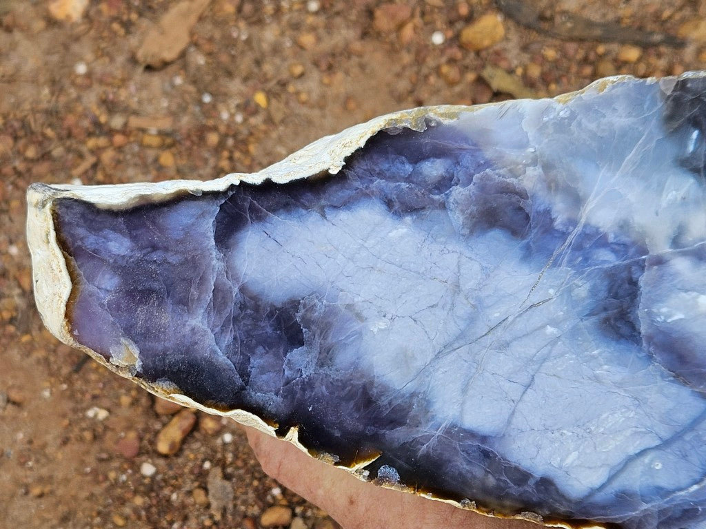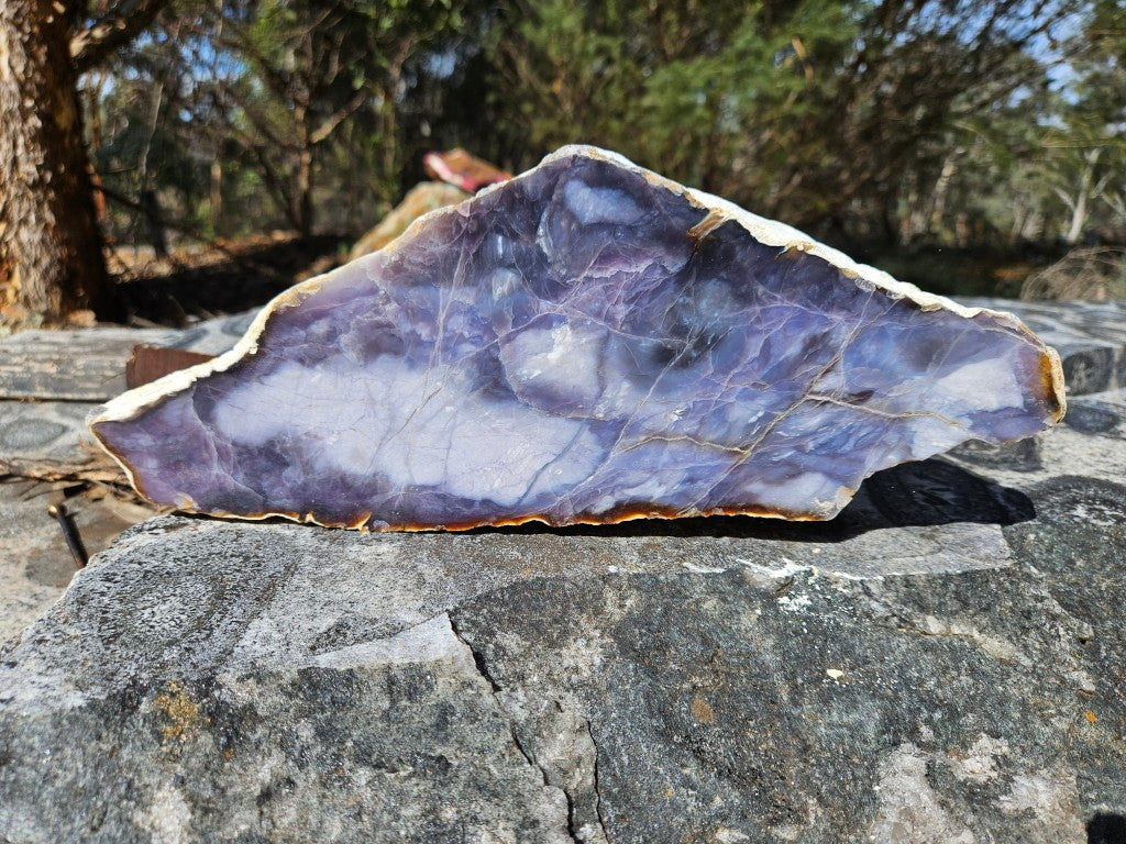 PU158 Purple Chalcedony rough rock, cut and polished on one side with a natural rough back.