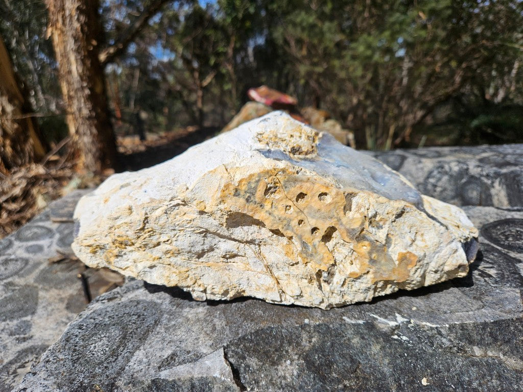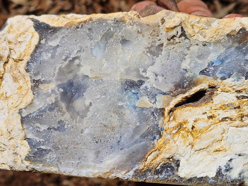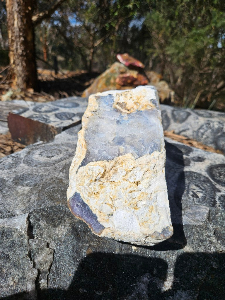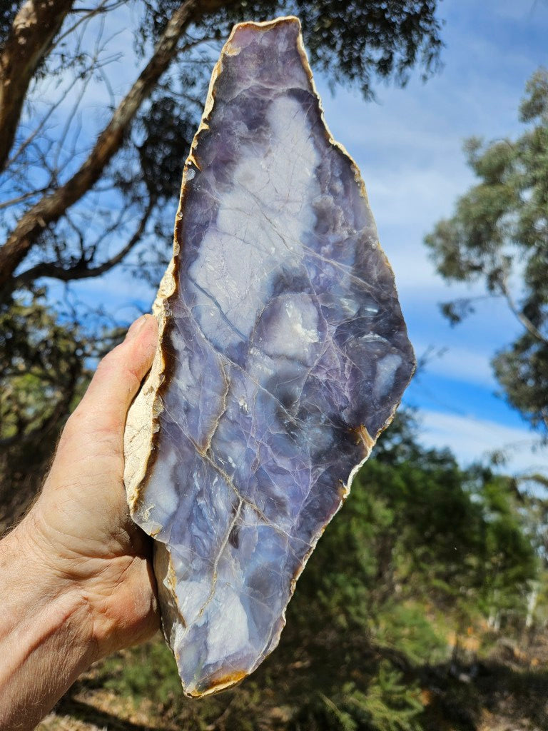 PU158 Purple Chalcedony rough rock, cut and polished on one side with a natural rough back.