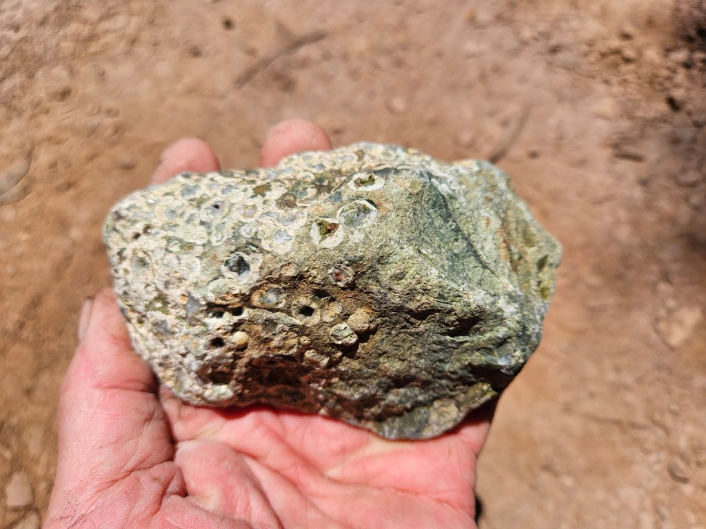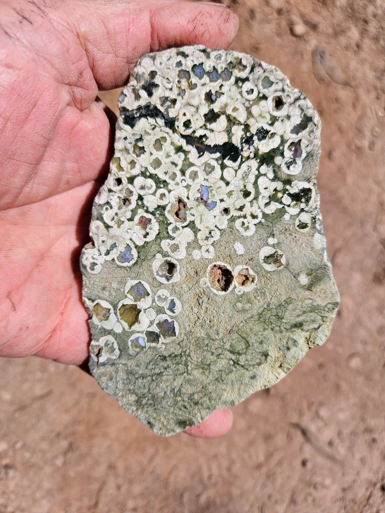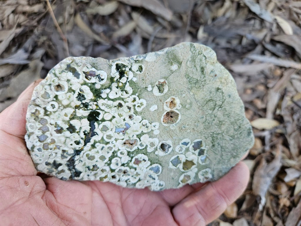 RFJ156 Rhyolite (Rainforest Jasper) rough rock, cut & polished on one side with natural back.