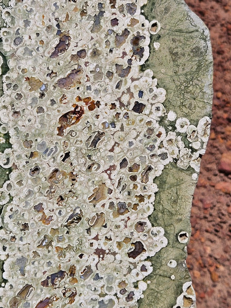 RFJ159. Rain Forest Jasper (Spherulitic rhyolite) slab, polished on one side.