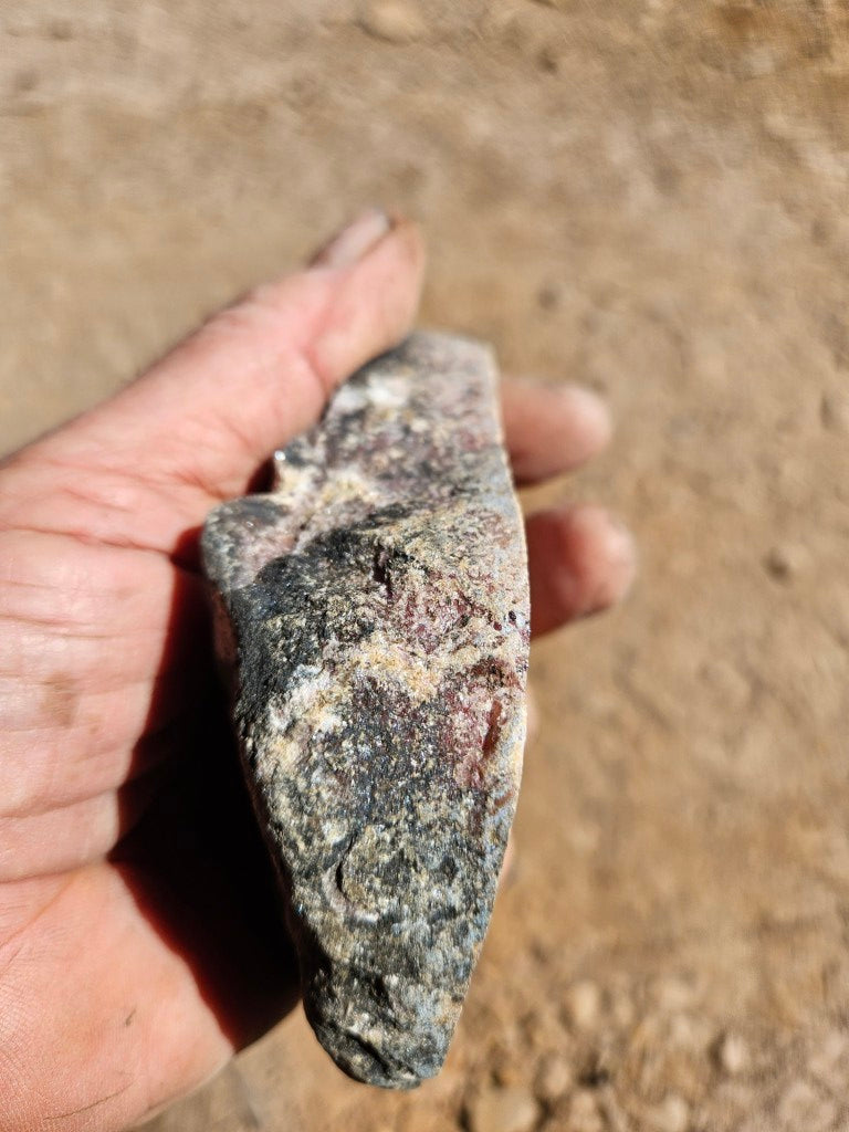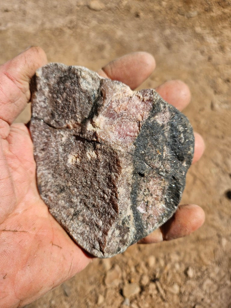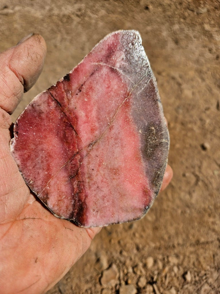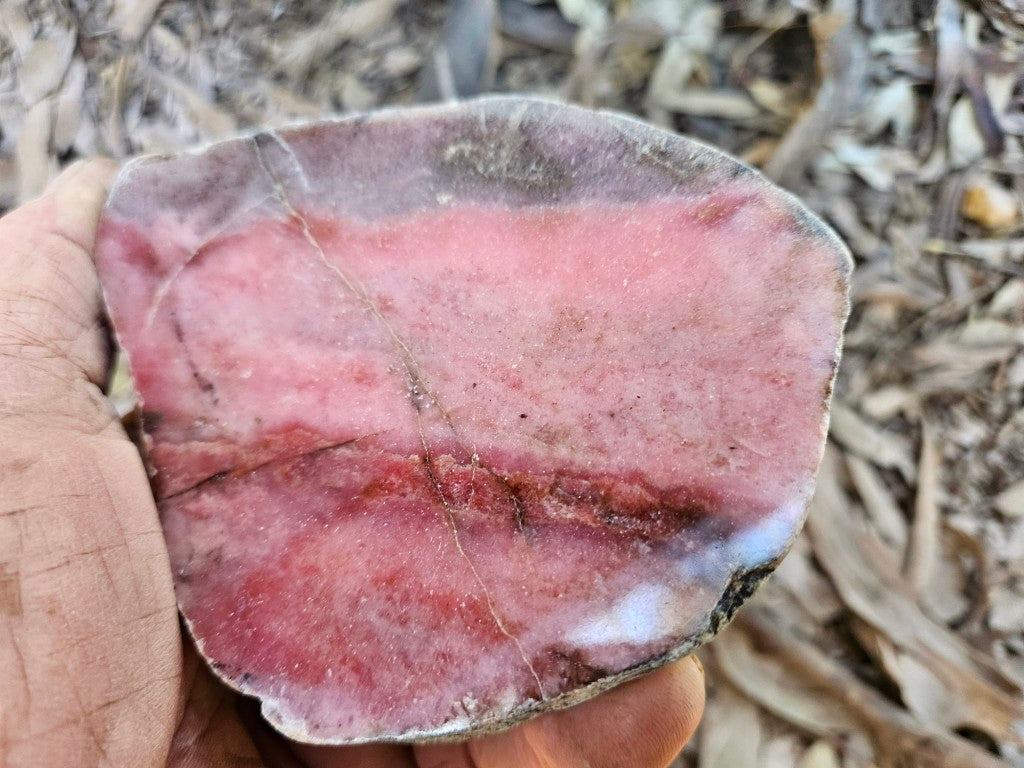 RH305 Rhodonite rock, cut and polished on one side with a natural rough back.
