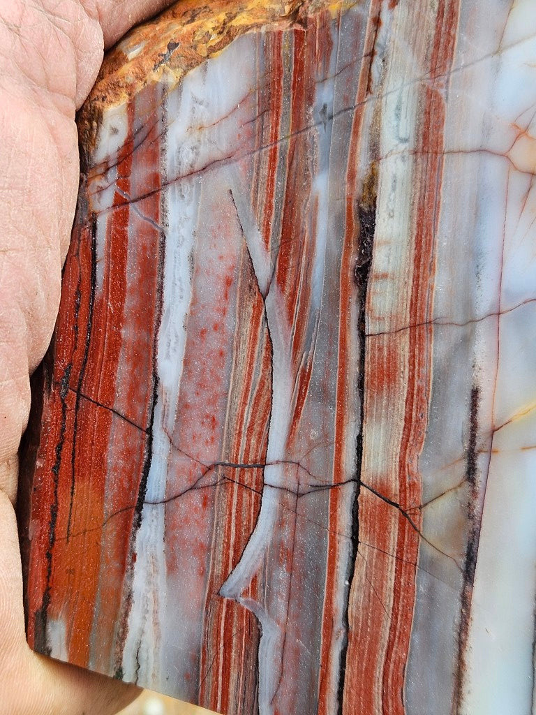 Marble Bar Chert. Cut and polished on one side with a rough, natural back and a cut base to stand as a display specimen !