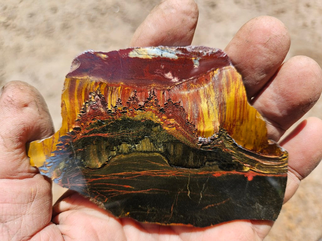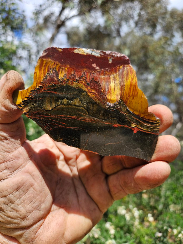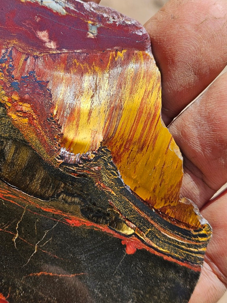 Marra Mamba Tiger Eye thin slab polished on one side .