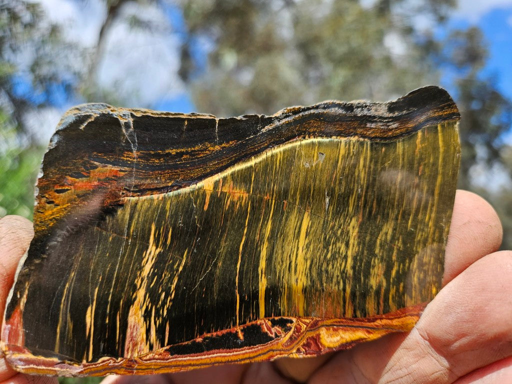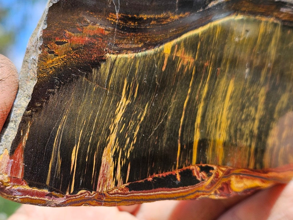 Marra Mamba Tiger Eye slab polished on one side .