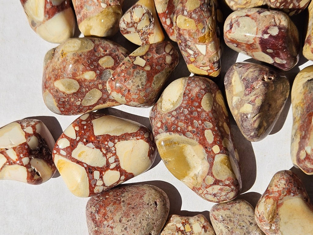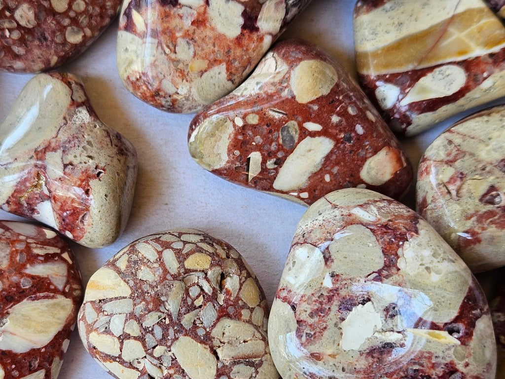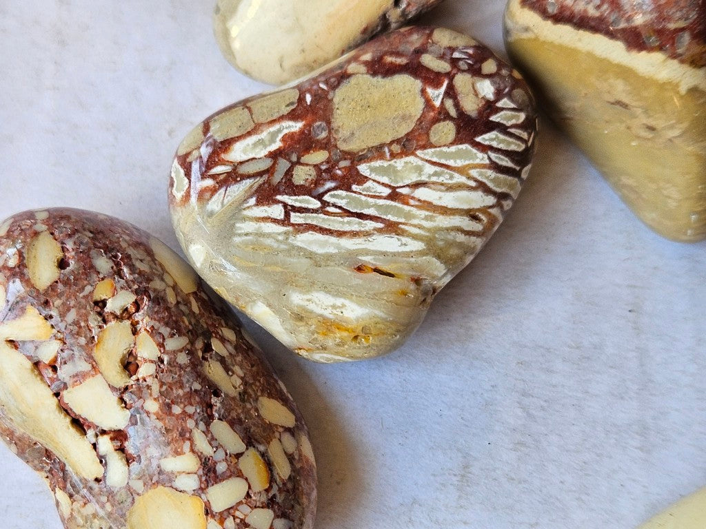 BMT112. Tumble polished Brecciated Mookaite.