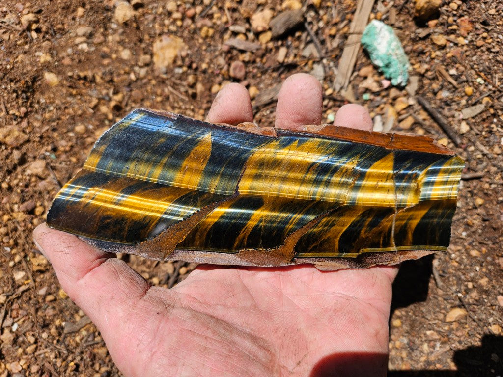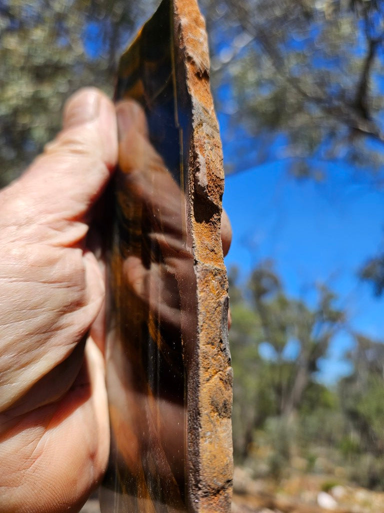 African Tiger Eye slab, cut and polished on one side.