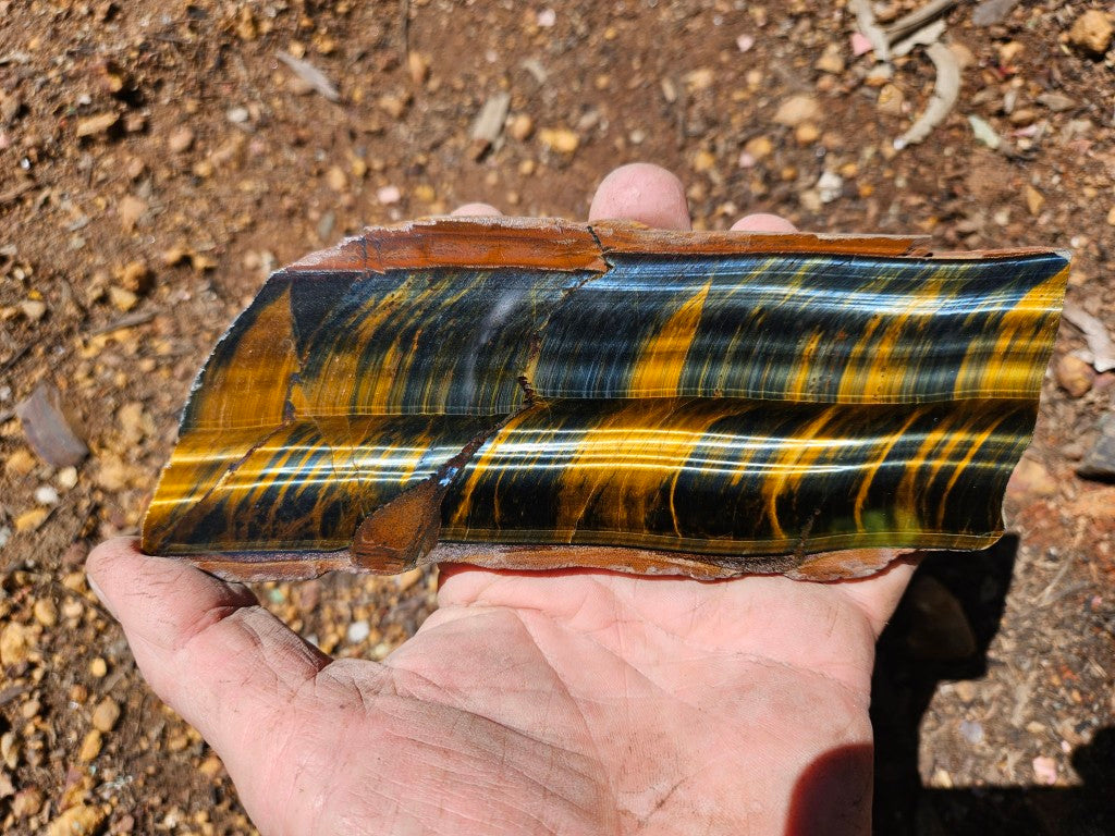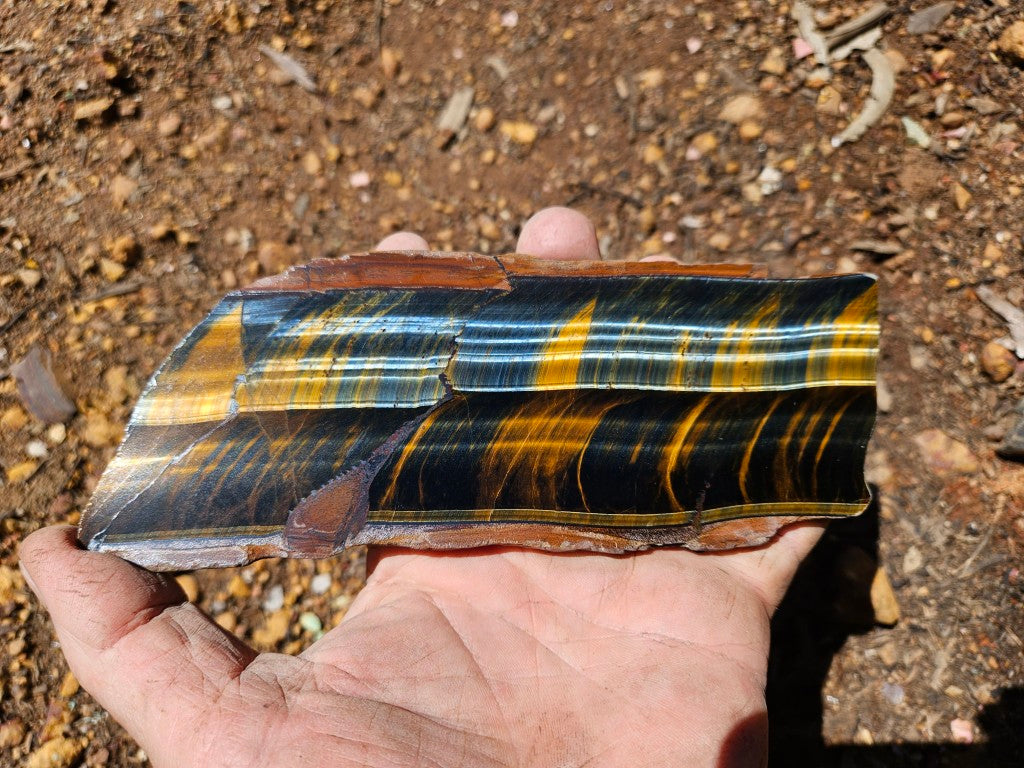 This blue and gold tiger eye also called variegated tiger eye occurs near the town of Prieska in the Northern Cape Province of South Africa.