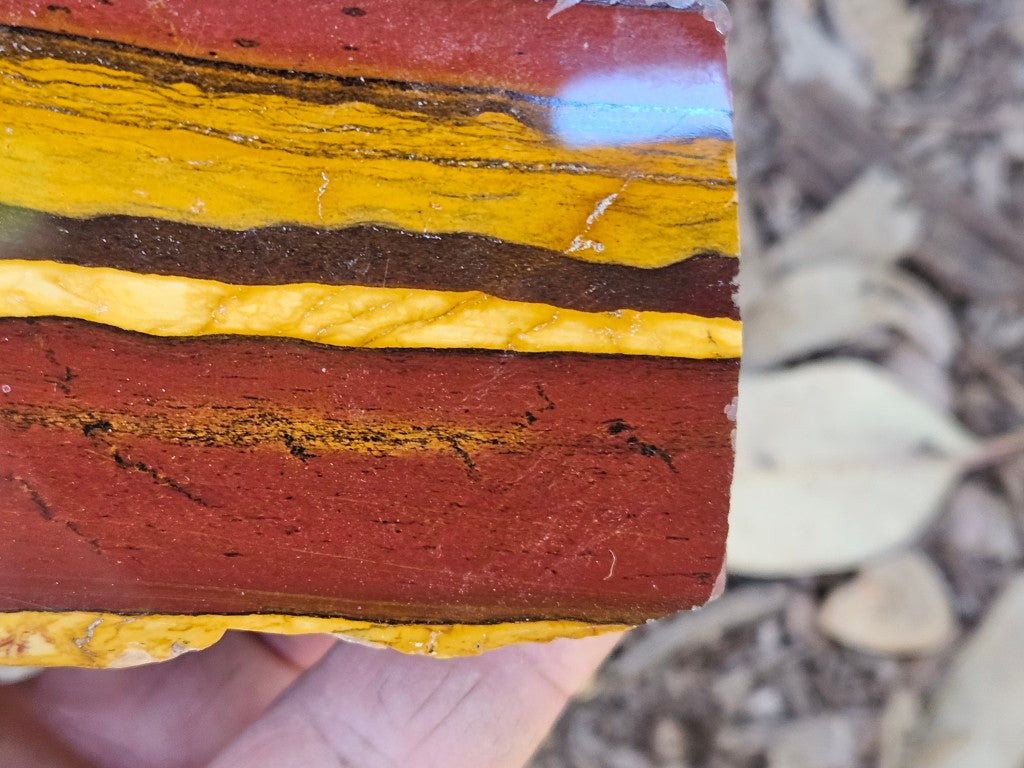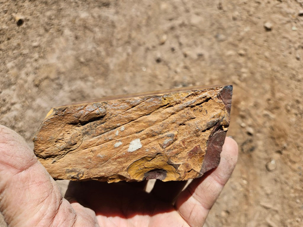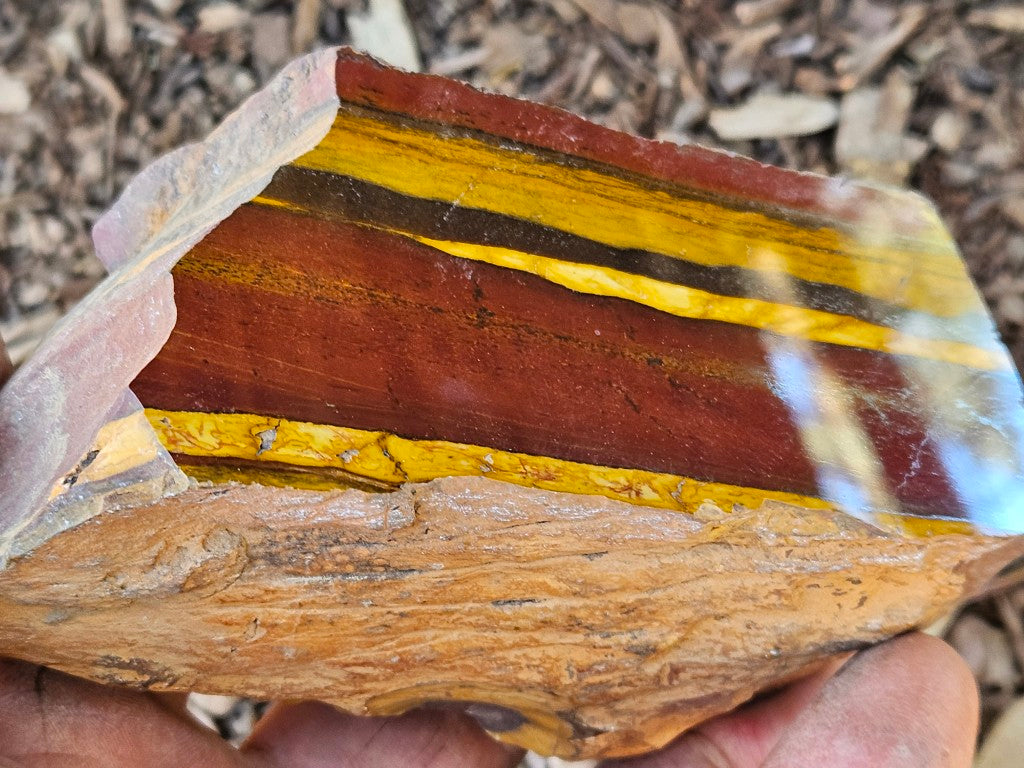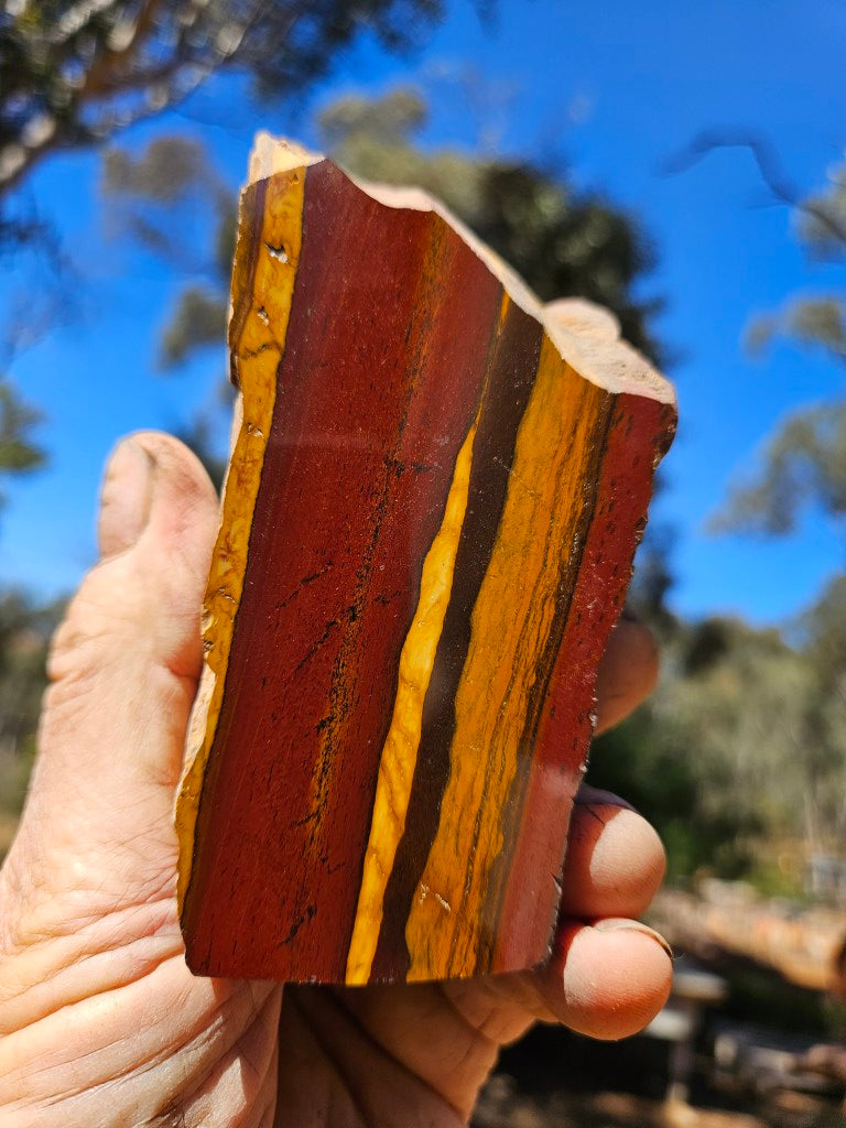 Desert Sunset rough rock, cut and polished on one side with a natural rough back.