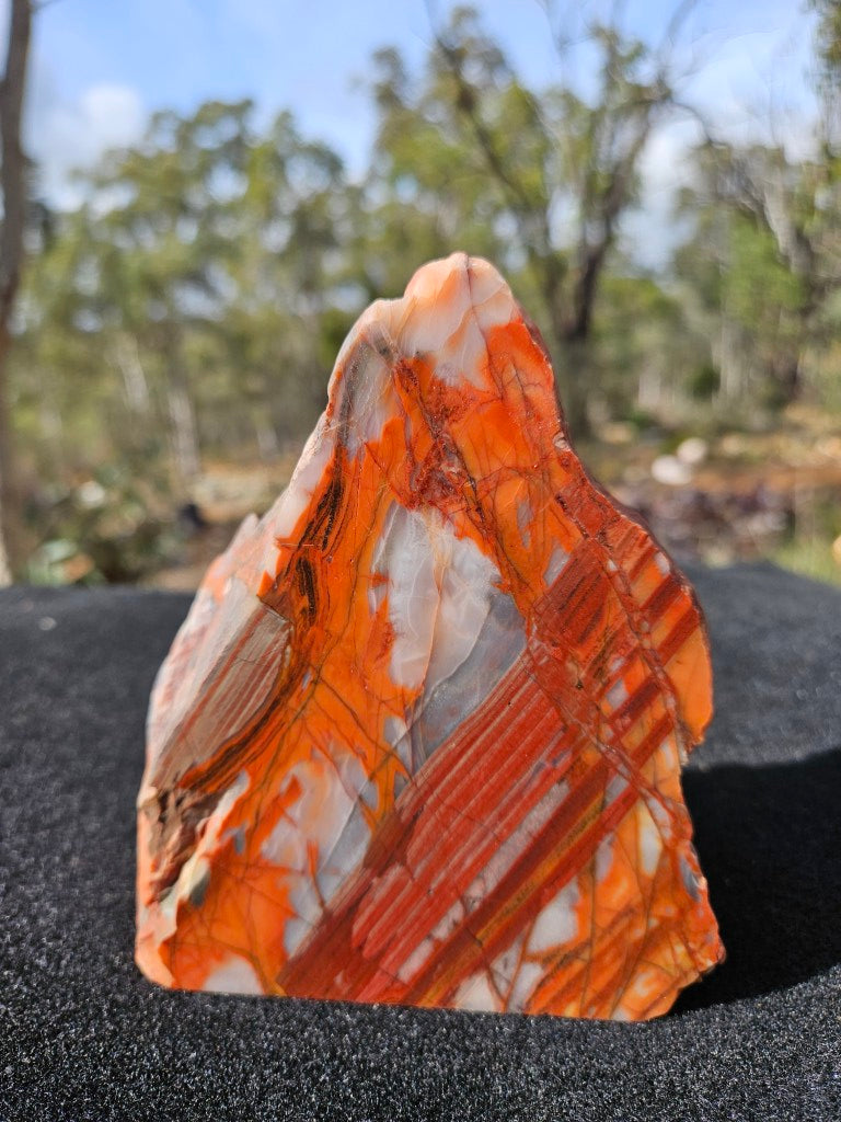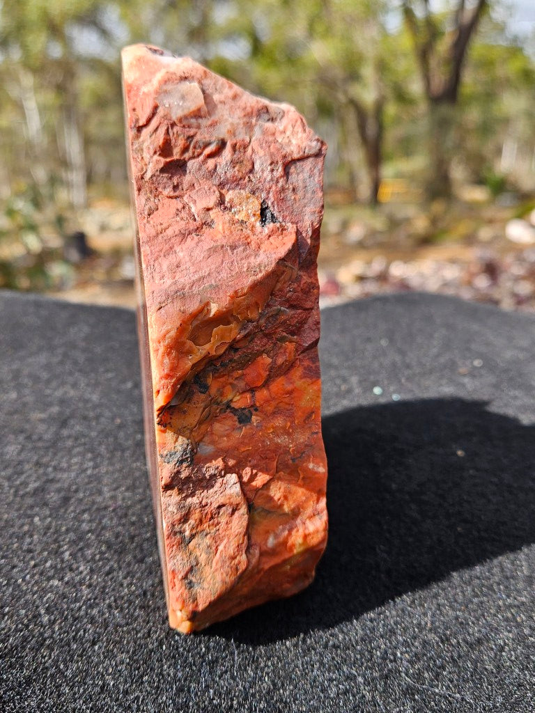 Marble Bar Chert. Cut and polished on one side with a rough, natural back and a cut base to stand as a display specimen !