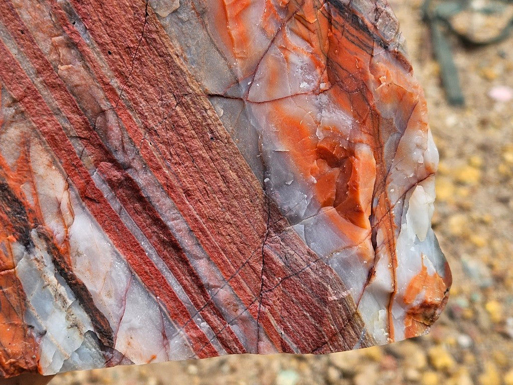 Marble Bar chert is a finely banded, iron-rich silica rock from the Marble Bar Chert Member (Warrawoona Group) of Western Australia. Formed in shallow Archean seas, it dates to the Paleoarchean (~3.46 billion years old), making it one of the Earth’s oldest well-preserved sedimentary rocks.